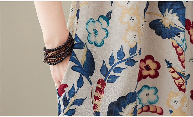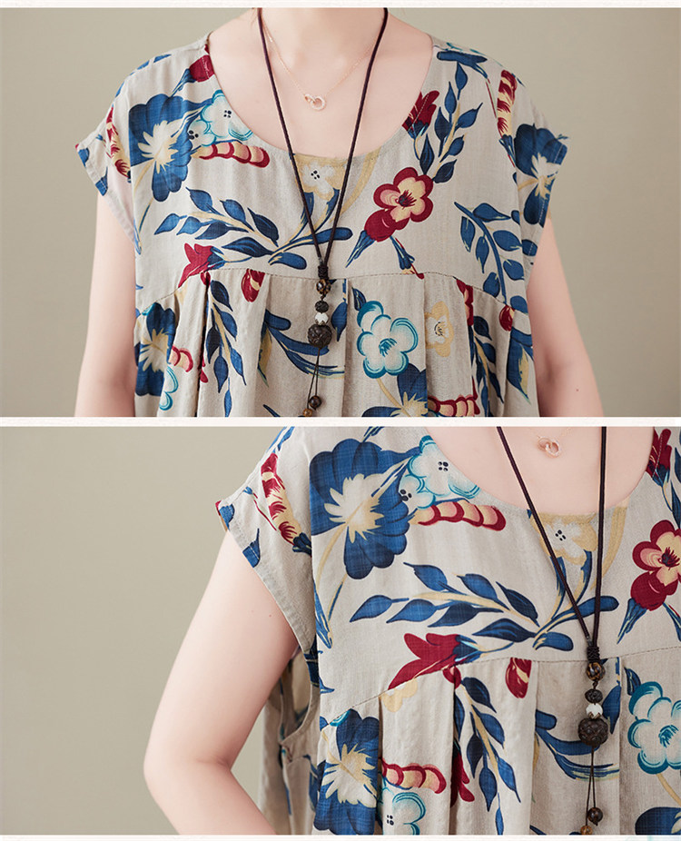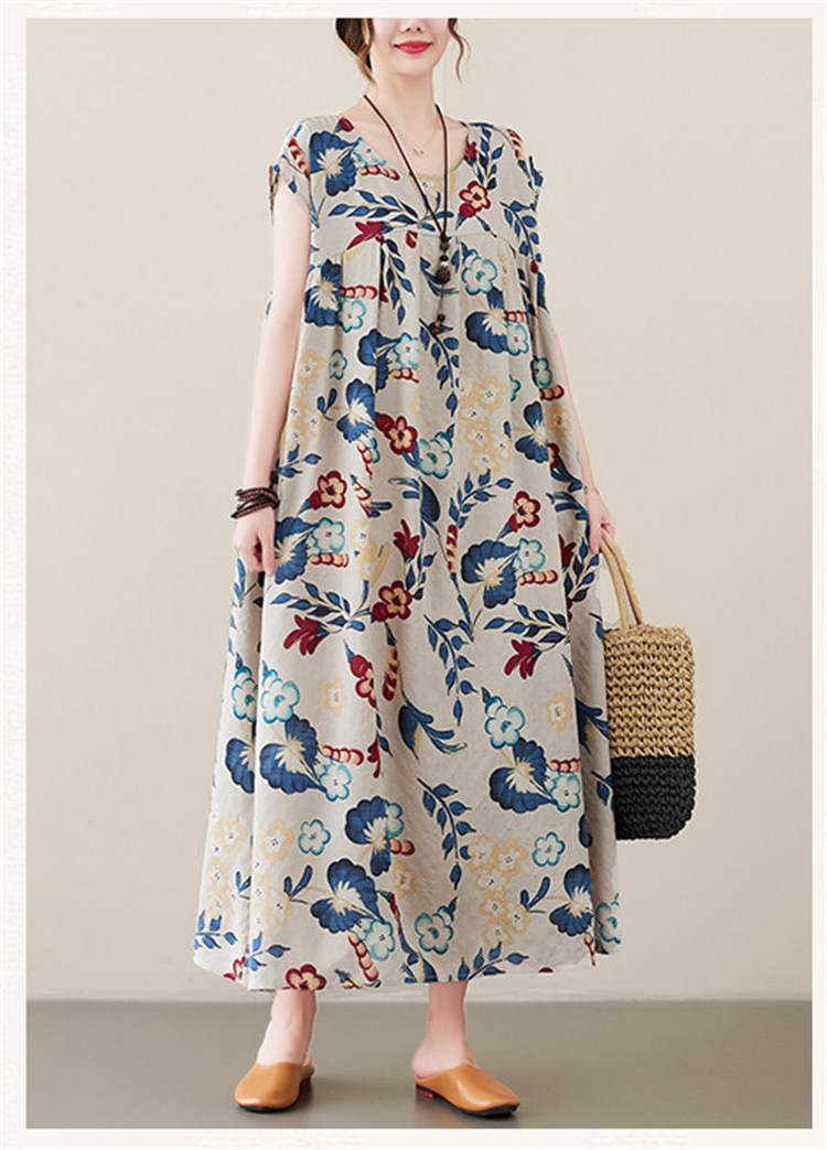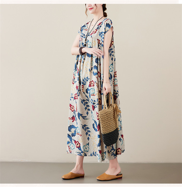 商品名 柄ワンピース ロングワンピース フレンチスリーブ レディース 花柄 夏 薄手 ワンピース 母の日 ギフト 綿 麻 夏服 ゆったり ビッグシルエット ロング丈 マキシ丈 プレゼント ママ カジュアル おしゃれ 可愛い きれいめ 夏物 普段着 30代 40代 50代 フリー 旅行 プリント