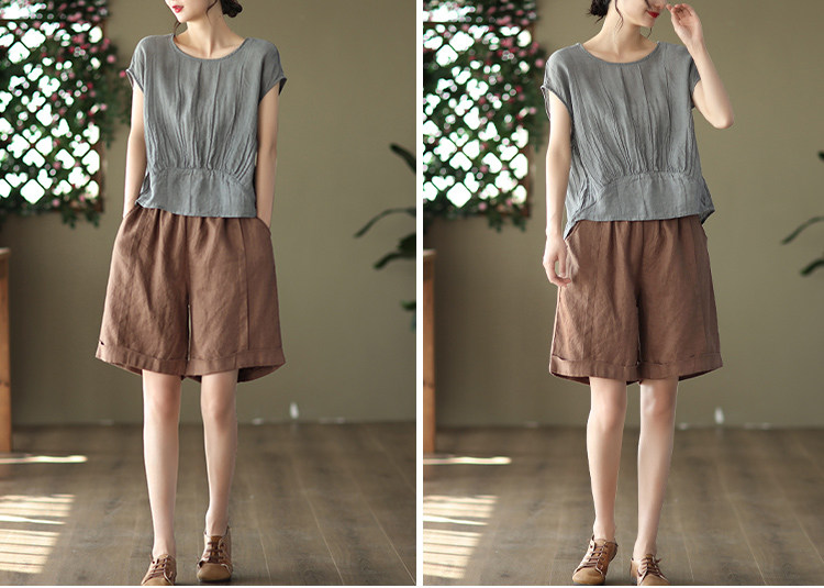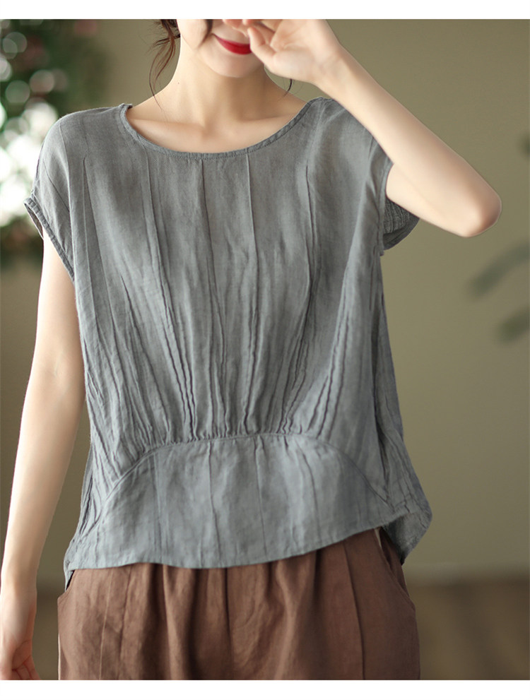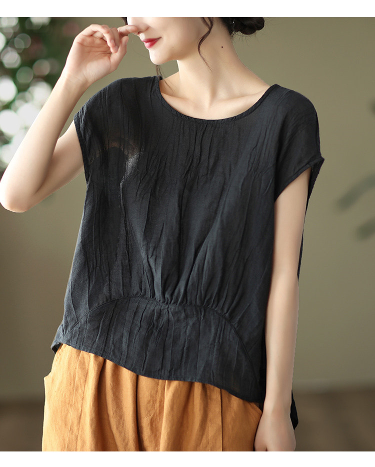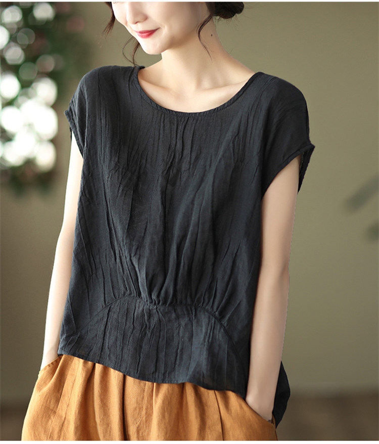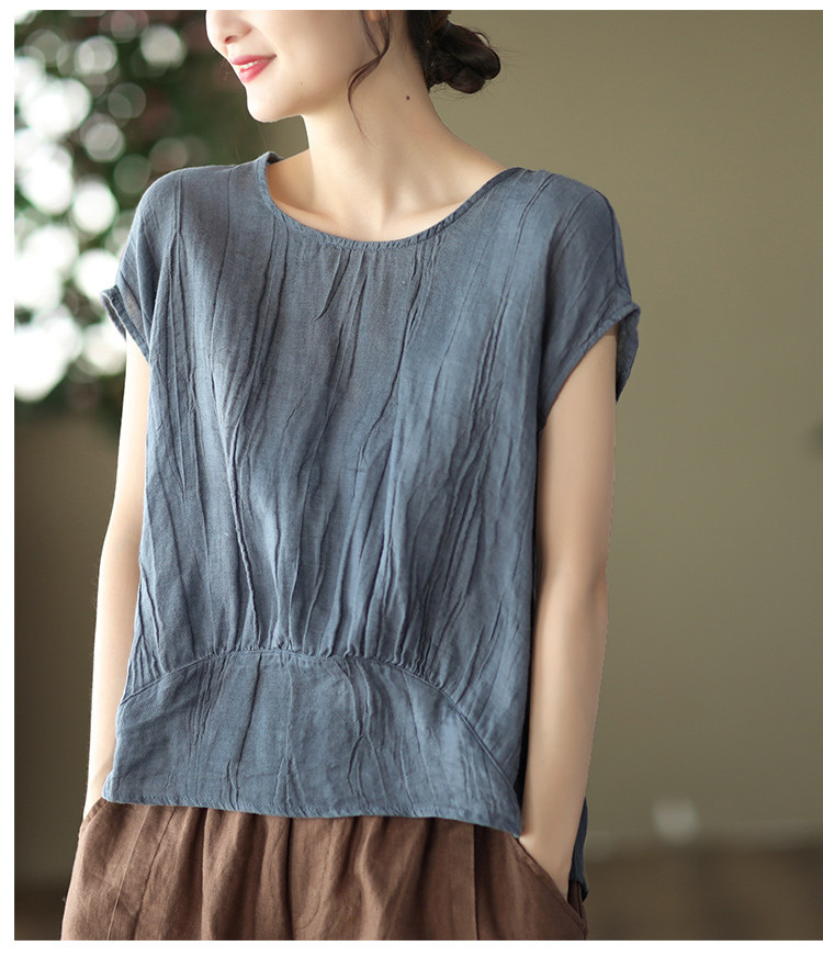 商品名 シャツ レディース ブラウス フレンチスリーブ クルーネック 無地 夏 トップス 半袖 ギャザー 大きいサイズ 通勤 ビジネス カジュアル おしゃれ 夏用 普段着 母の日 プレゼント ゆったり 30代 40代 50代 M L XL 2XL 3XL シンプル オフィス ママ会 お出かけ 夏物