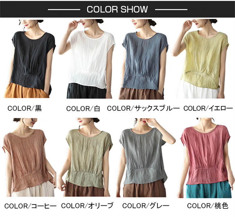 ※お取り扱い前に、商品付属タグの記載もご確認下さい。商品情報商品名 シャツ レディース ブラウス フレンチスリーブ クルーネック 無地 夏 トップス 半袖 ギャザー 大きいサイズ 通勤 ビジネス カジュアル おしゃれ 夏用 普段着 母の日 プレゼント ゆったり 30代 40代 50代 M L XL 2XL 3XL シンプル オフィス ママ会 お出かけ 夏物素材 綿混紡カラー 黒|白|サックスブルー|イエロー|コーヒー|オリーブ|グレー|桃色サイズ M|L|XL|2XL|3XL生産国 中国包装について 環境保護の観点から、「簡易包装」を推進しております明細書について 当店ではエコロジーと個人情報流出防止のため、ご指示の無い限り明細書を発行しておりません。