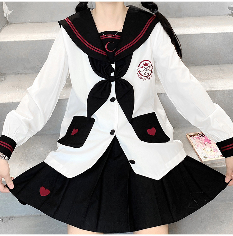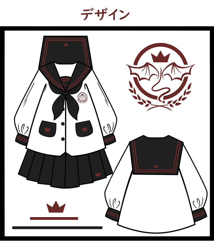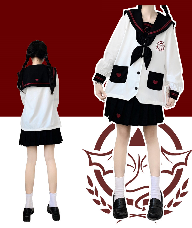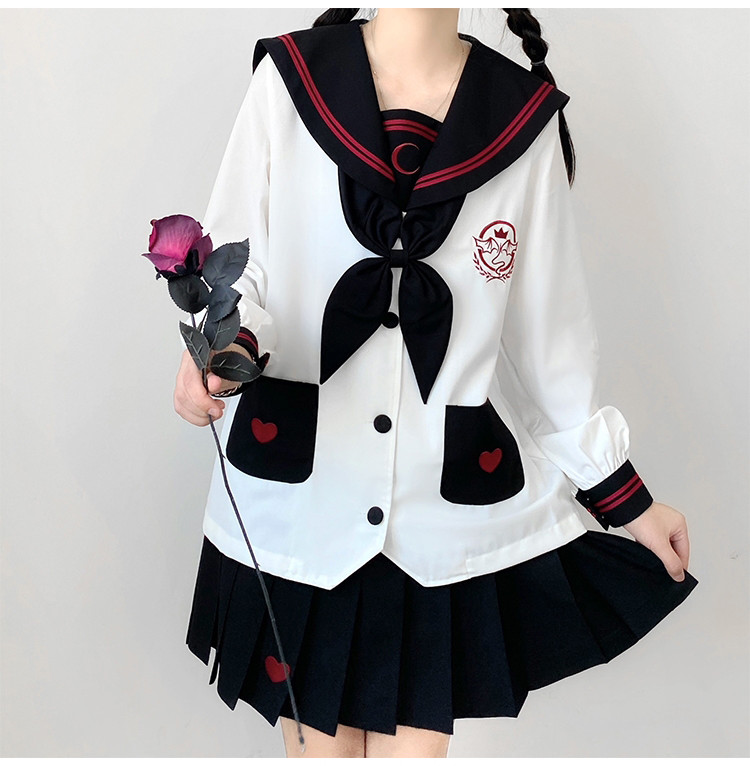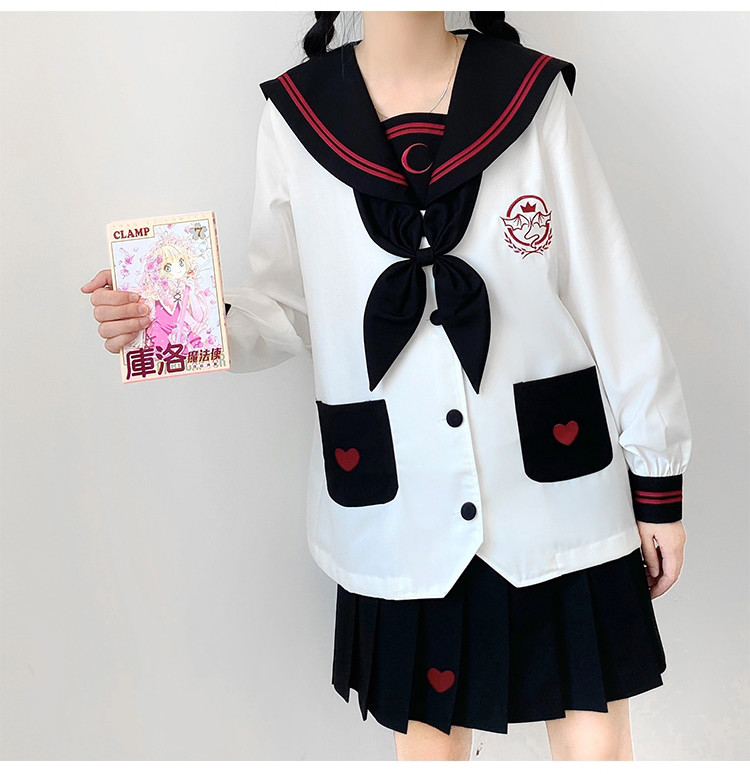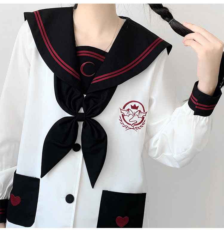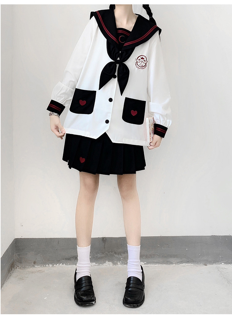 商品名 セーラー服 トップス レディース 長袖 刺しゅう 配色 ハート コスチューム カジュアル 女子 コーデ 可愛い