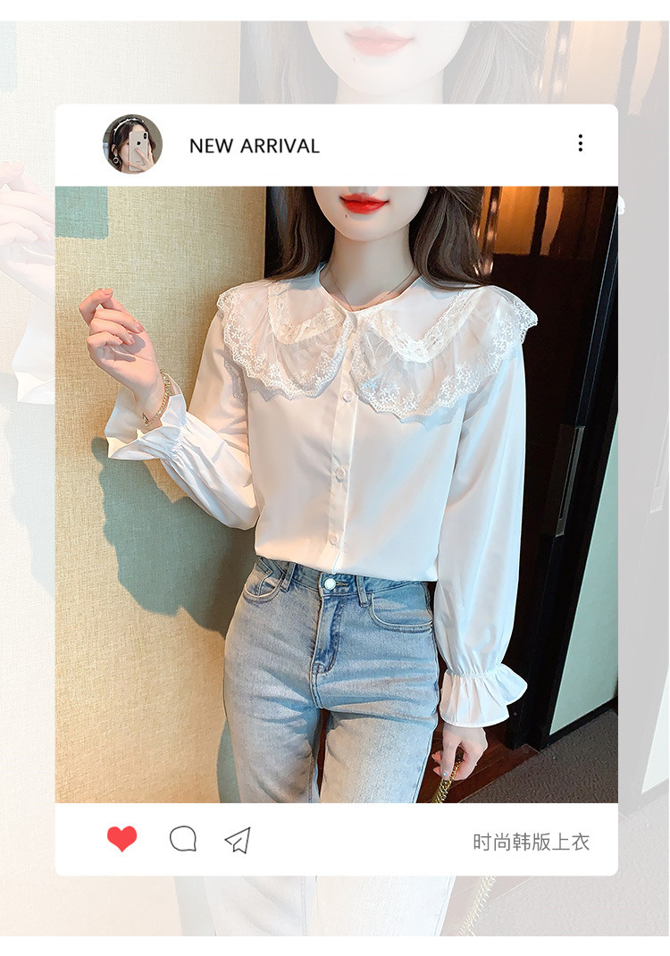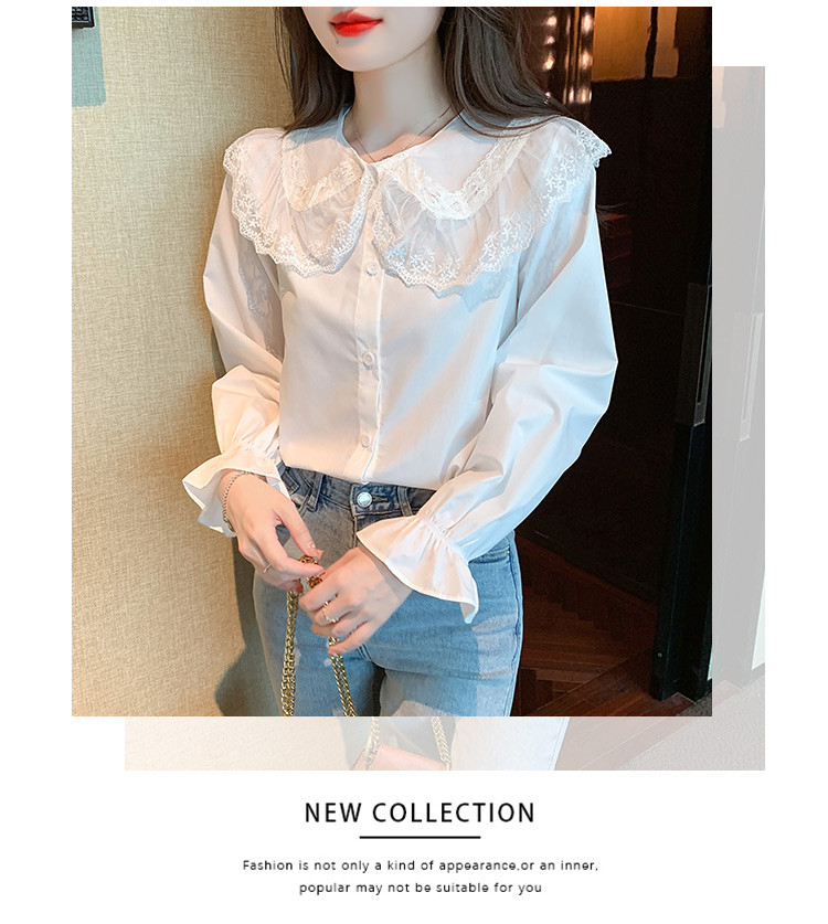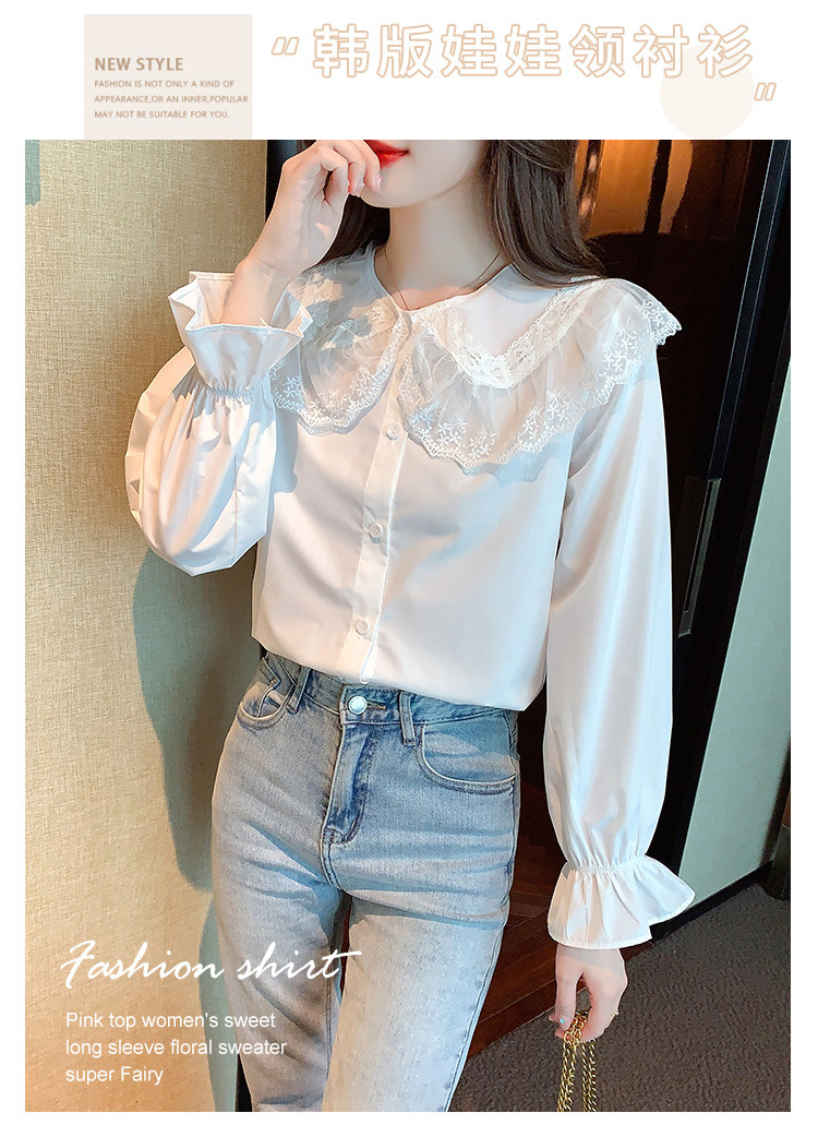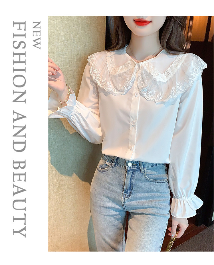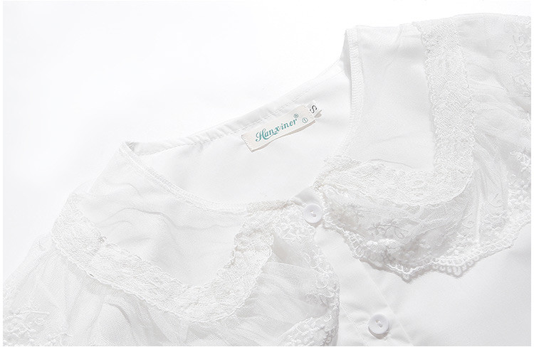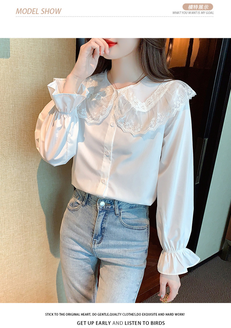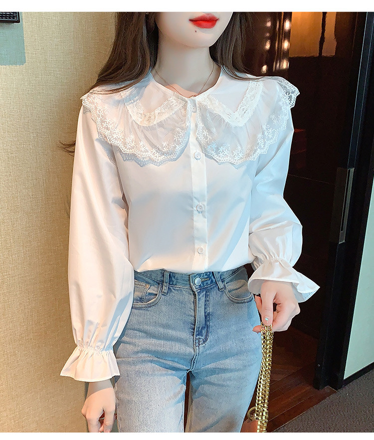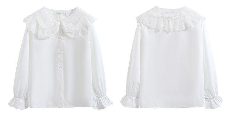 商品名 ブラウス レディース シャツ レース キャンディースリーブ 前ボタン ビッグカラー 長袖 ロリータ ホワイト