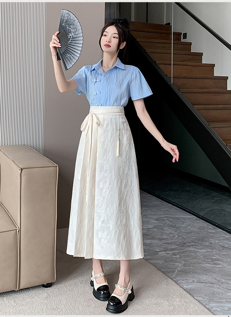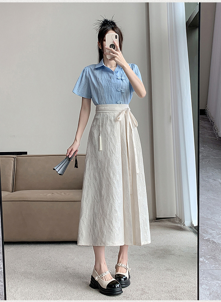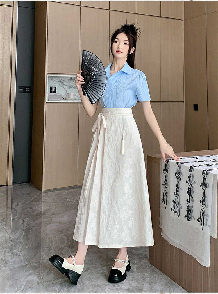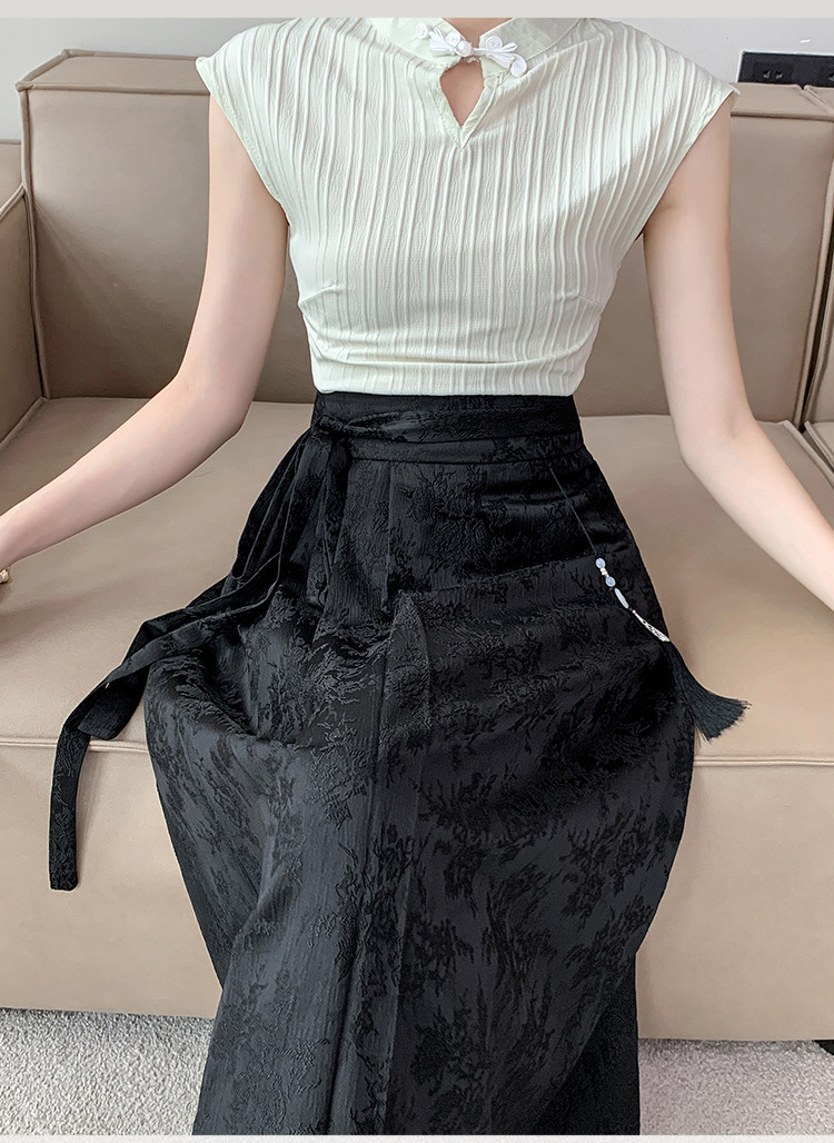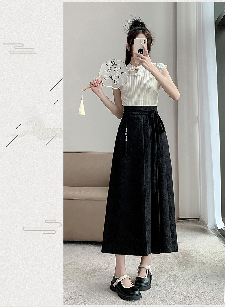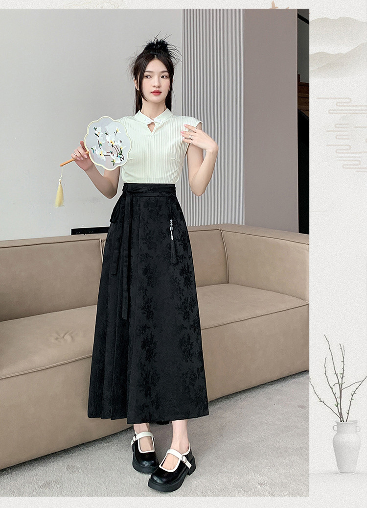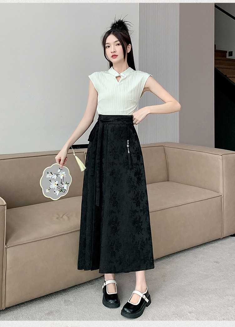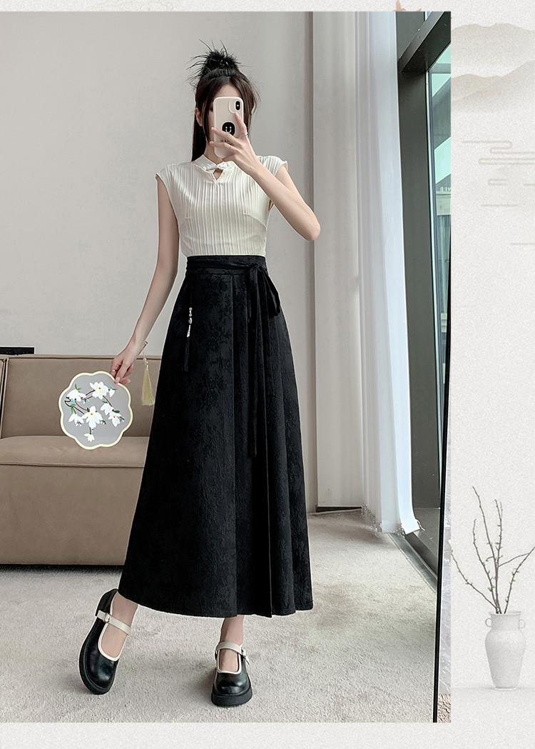 ロングスカート チャイナ風 夏 プリーツ フレアスカート マキシ丈 ジャカード織 茶会 ギフトレディースファッション ボトムス スカート