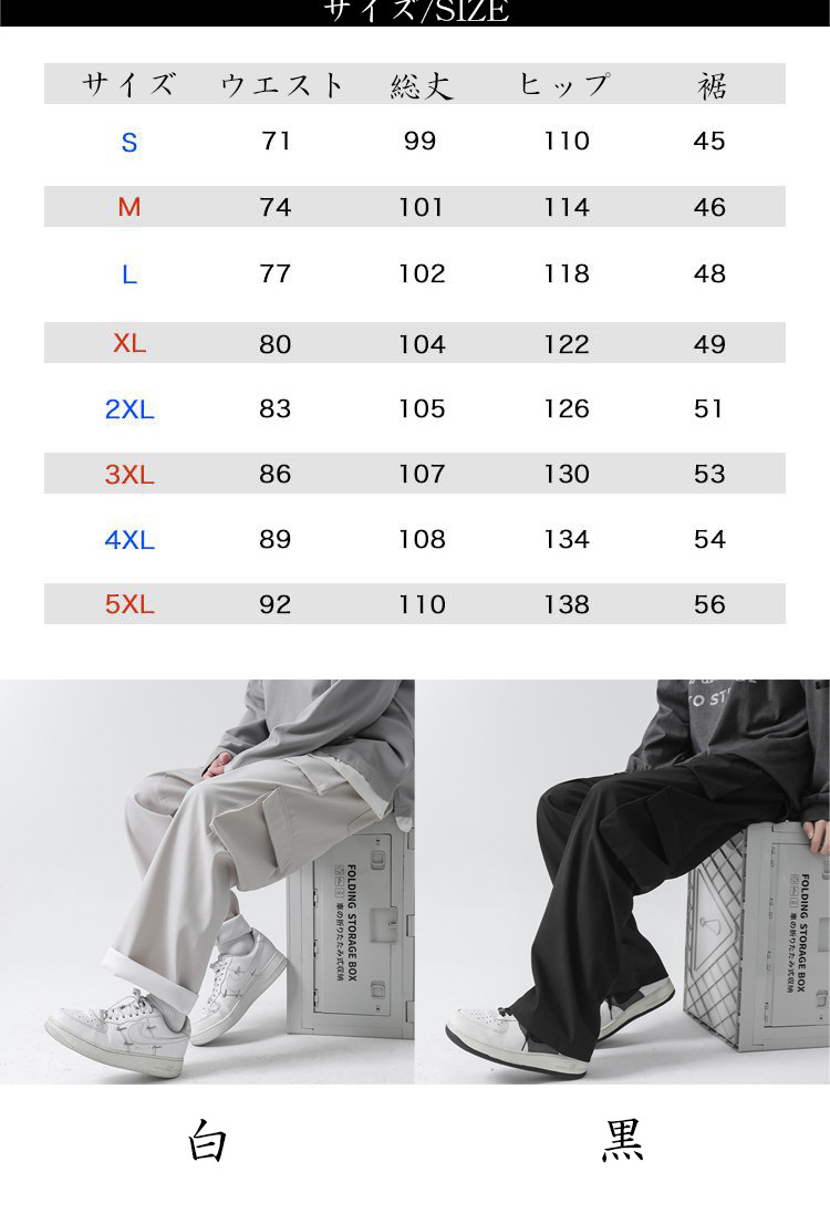 ※お取り扱い前に、商品付属タグの記載もご確認下さい。商品情報商品名 カーゴパンツ メンズ ズボン ボトムス 無地 ロング ワークパンツ かっこいい カジュアル おしゃれ 春夏素材 ポリエステルカラー 白 黒サイズ S M L XL 2XL 3XL 4XL 5XL生産国 中国包装について 環境保護の観点から、「簡易包装」を推進しております明細書について 当店ではエコロジーと個人情報流出防止のため、ご指示の無い限り明細書を発行しておりません。