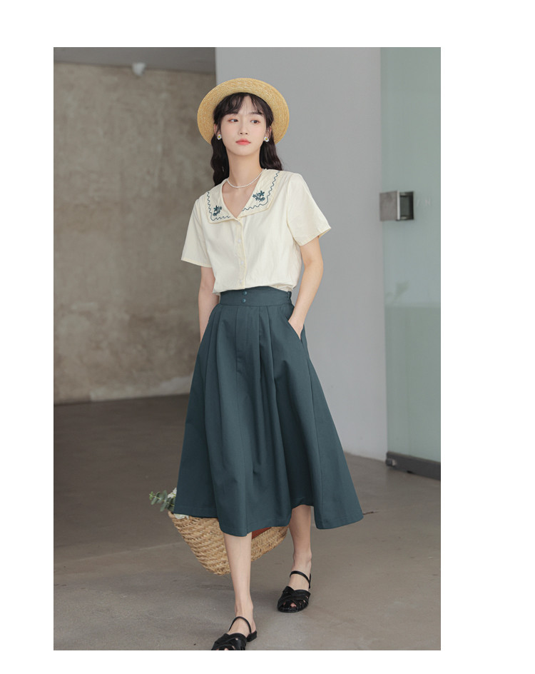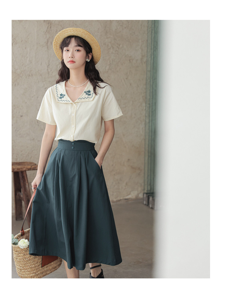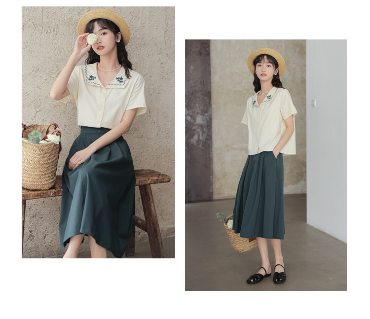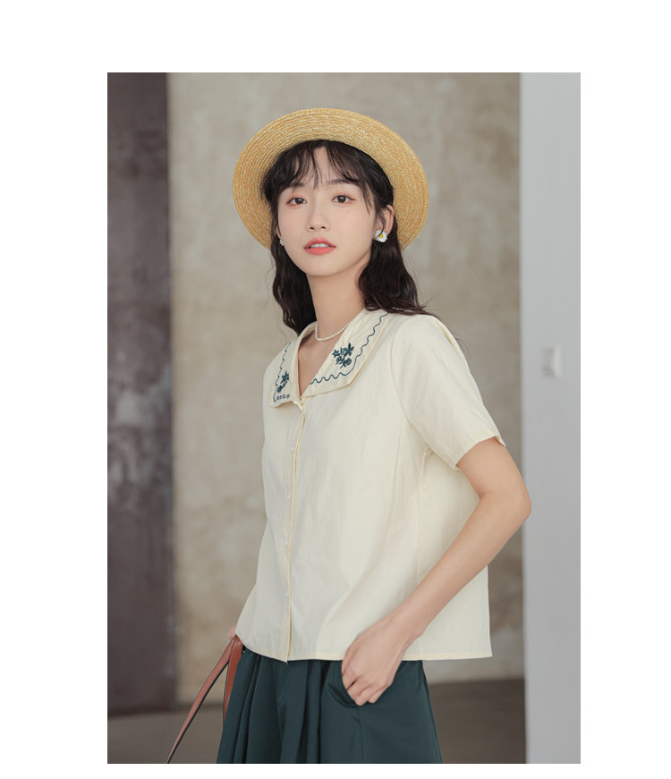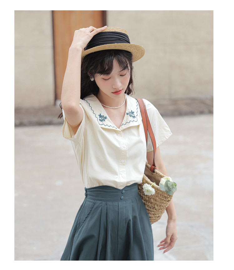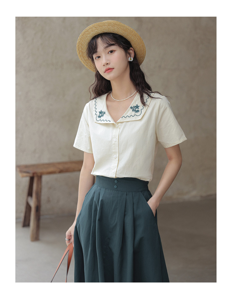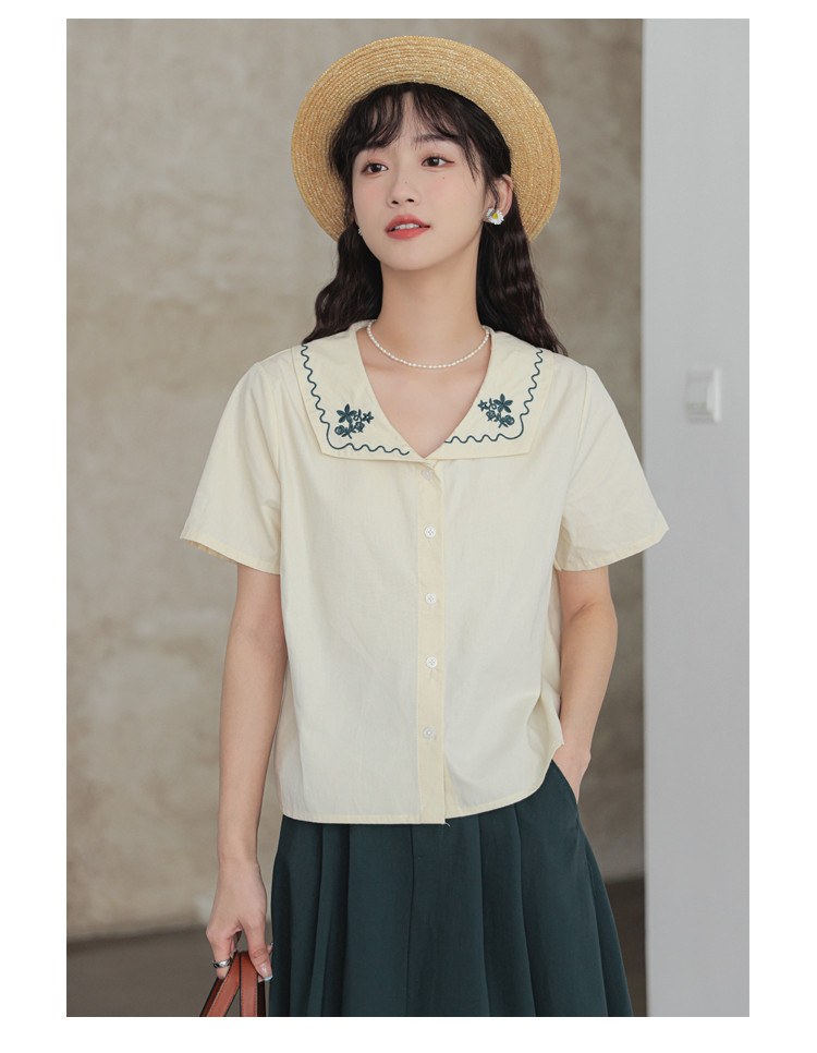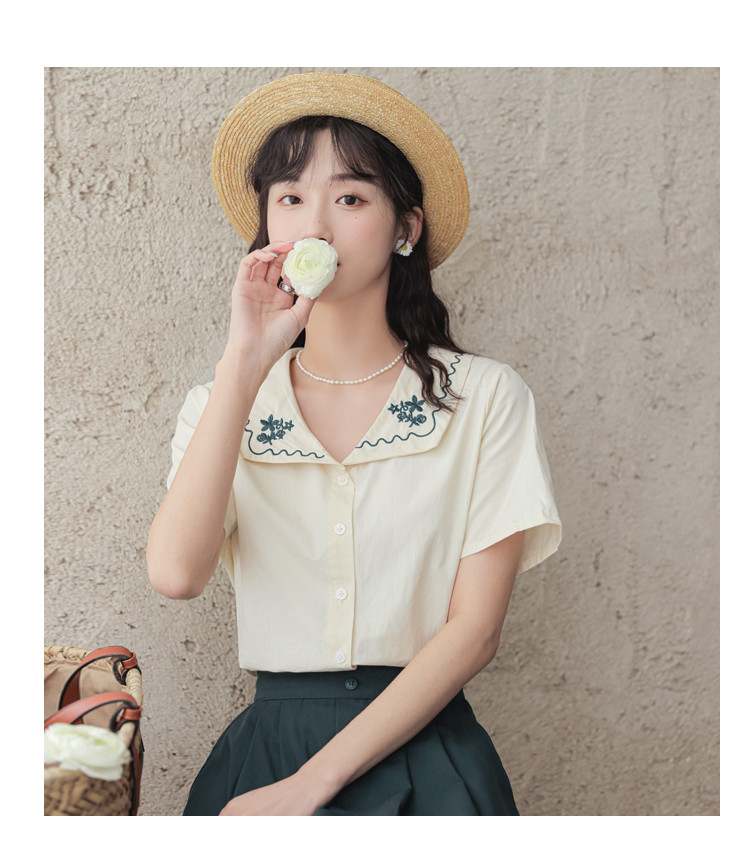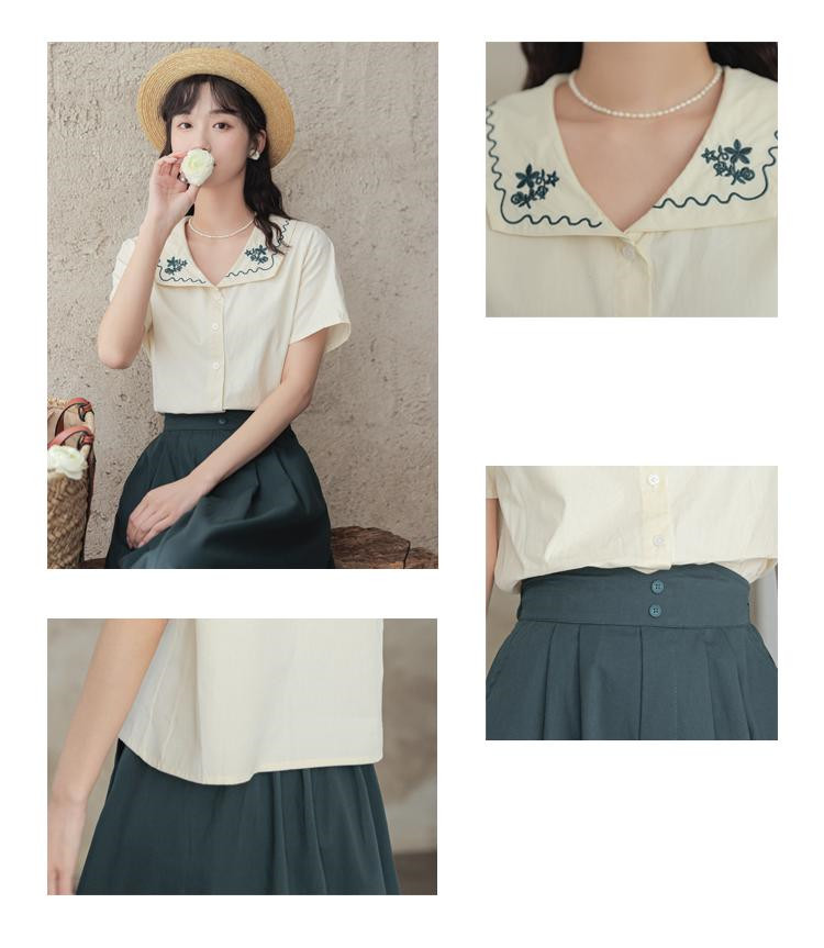 商品名 ブラウス レディース シャツ トップス ボタニカル 襟 刺しゅう 配色 前ボタン 可愛い カジュアル かわいい