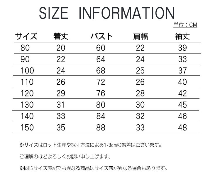 サイズ 80cm 90cm 100cm 110cm 120cm 130cm 140cm 150cm