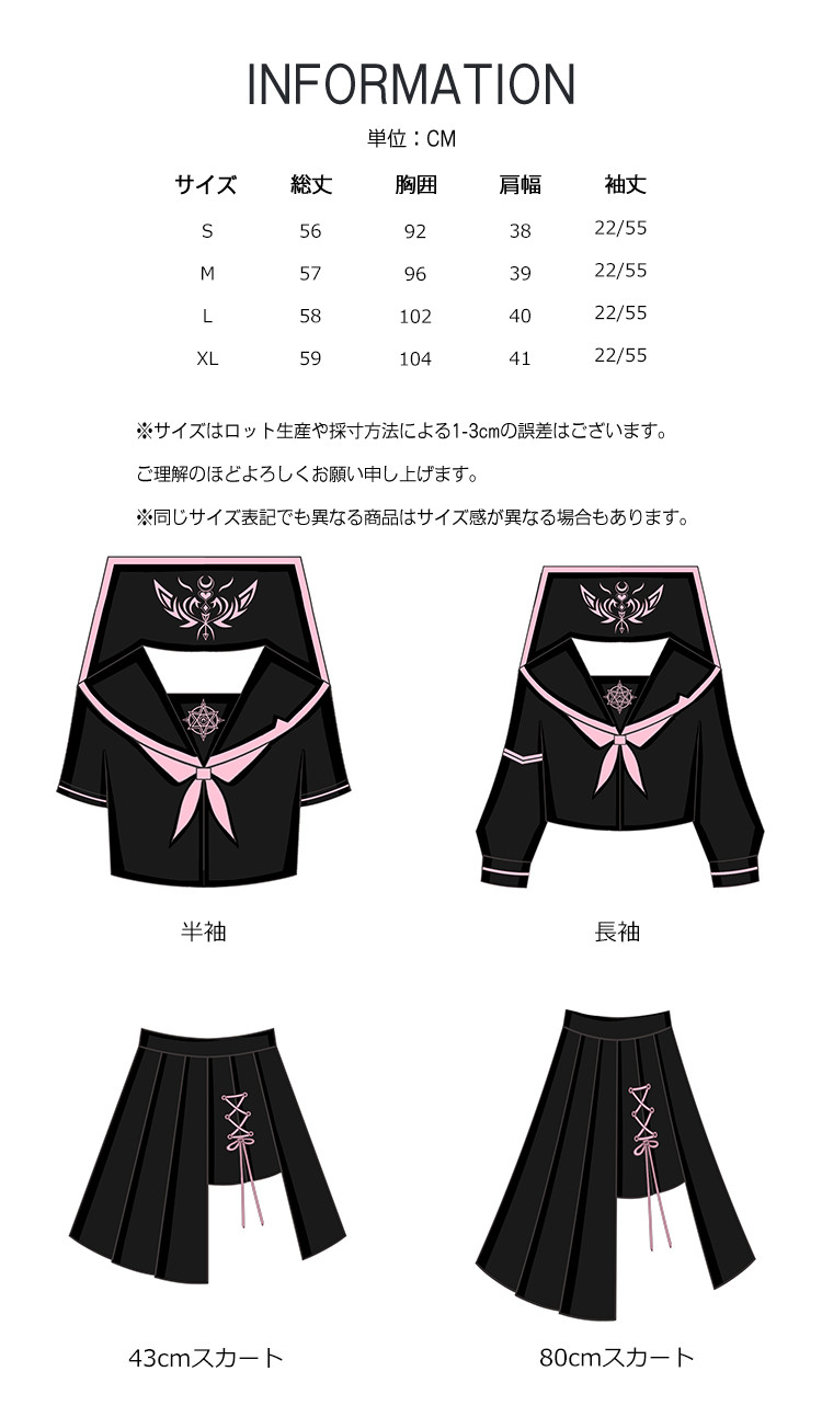 カラー: 半袖 長袖 半袖+43cmスカート 長袖+43cmスカート 半袖+80cmスカート 長袖+80cmスカート