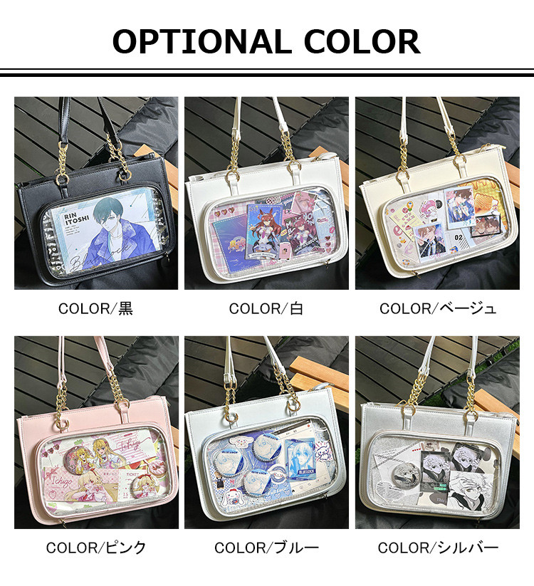 ※お取り扱い前に、商品付属タグの記載もご確認下さい。商品情報商品名 痛バ 痛バッグ バッグ トートバッグ ショルダーバッグ レディース 鞄 カバン かわいい おしゃれ カジュアル素材 0カラー ブラック|ホワイト|ベージュ|ピンク|ブルー|シルバーサイズ F生産国 中国包装について 環境保護の観点から、「簡易包装」を推進しております明細書について 当店ではエコロジーと個人情報流出防止のため、ご指示の無い限り明細書を発行しておりません。