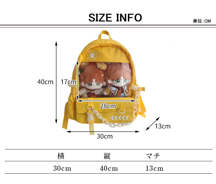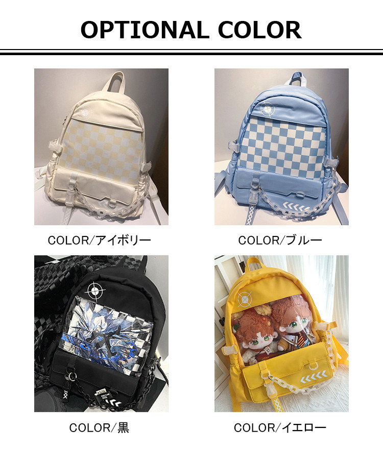 ※お取り扱い前に、商品付属タグの記載もご確認下さい。商品情報商品名 痛バッグ リュック ビニールバッグ 大容量 ビニールバッグ ヲタバ 痛バ 缶バッチ クリアバッグ カジュアル素材 0カラー アイボリー|ブルー|ブラック|イエローサイズ F生産国 中国包装について 環境保護の観点から、「簡易包装」を推進しております明細書について 当店ではエコロジーと個人情報流出防止のため、ご指示の無い限り明細書を発行しておりません。