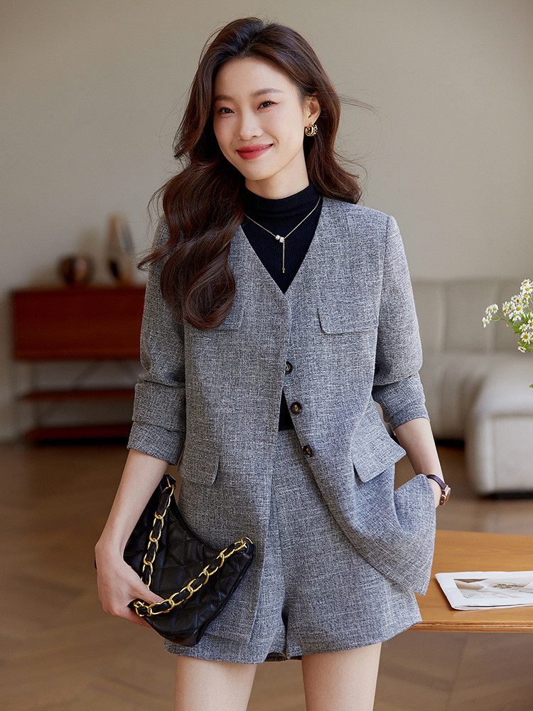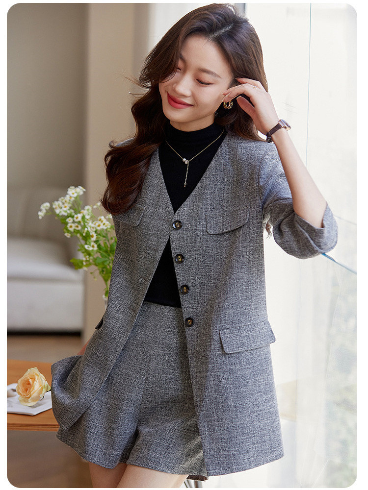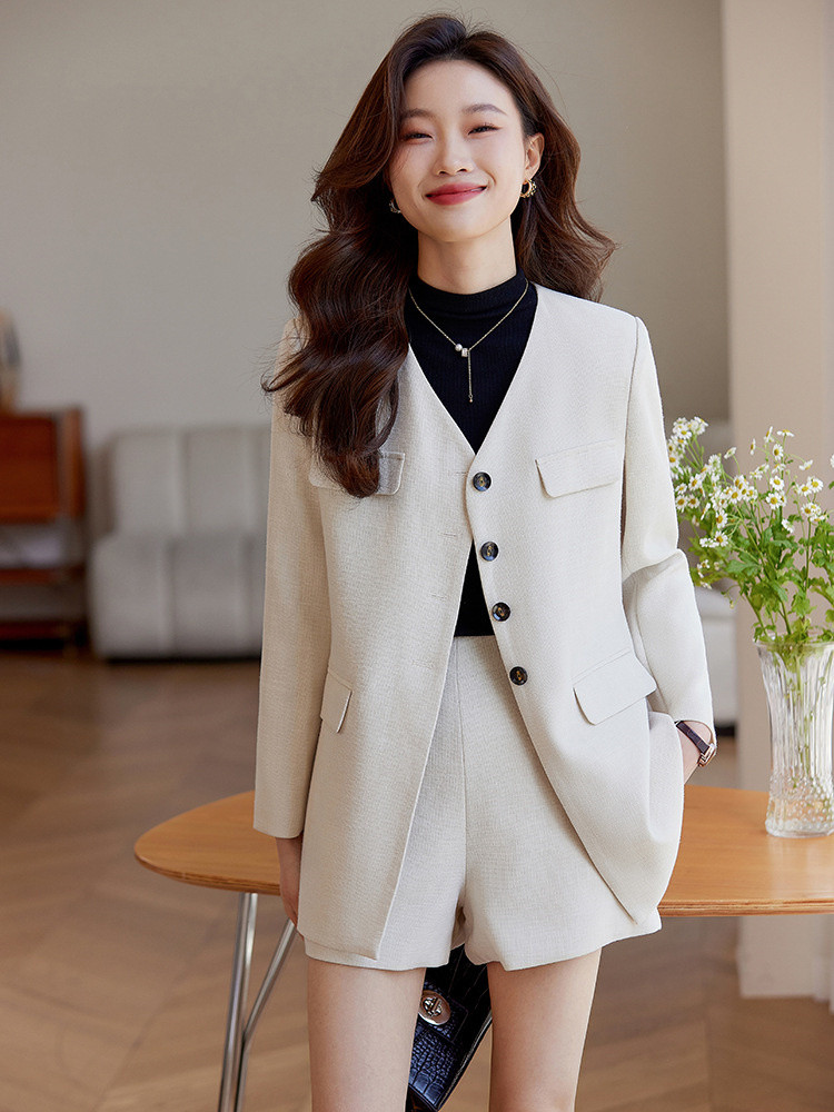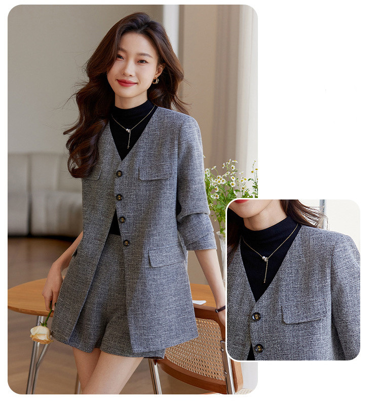 商品名 パンツ スーツ レディース ショートパンツ ノーカラー ジャケット 2点セット オフィス おしゃれ カジュアル