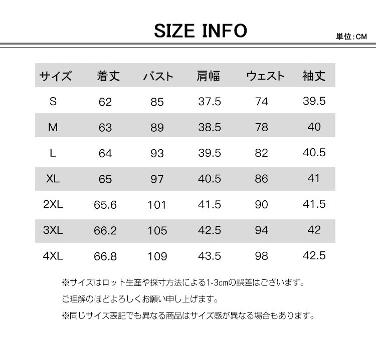 サイズ S|M|L|XL|2XL|3XL|4XL