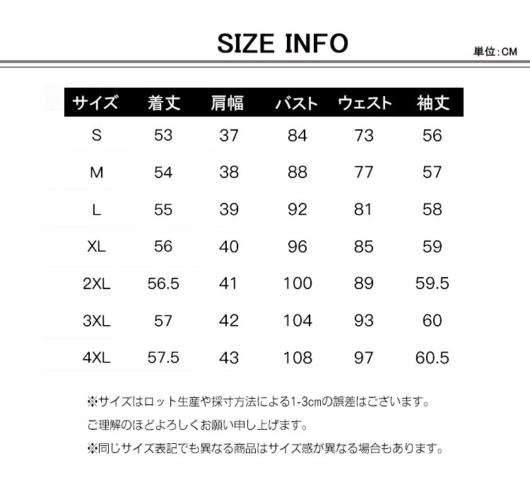 サイズ S|M|L|XL|2XL|3XL|4XL