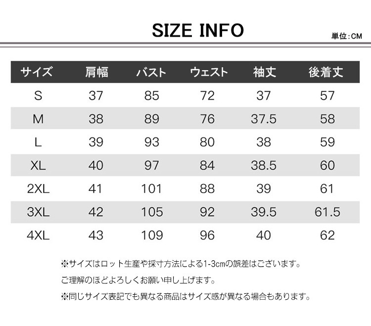 サイズ S|M|L|XL|2XL|3XL|4XL