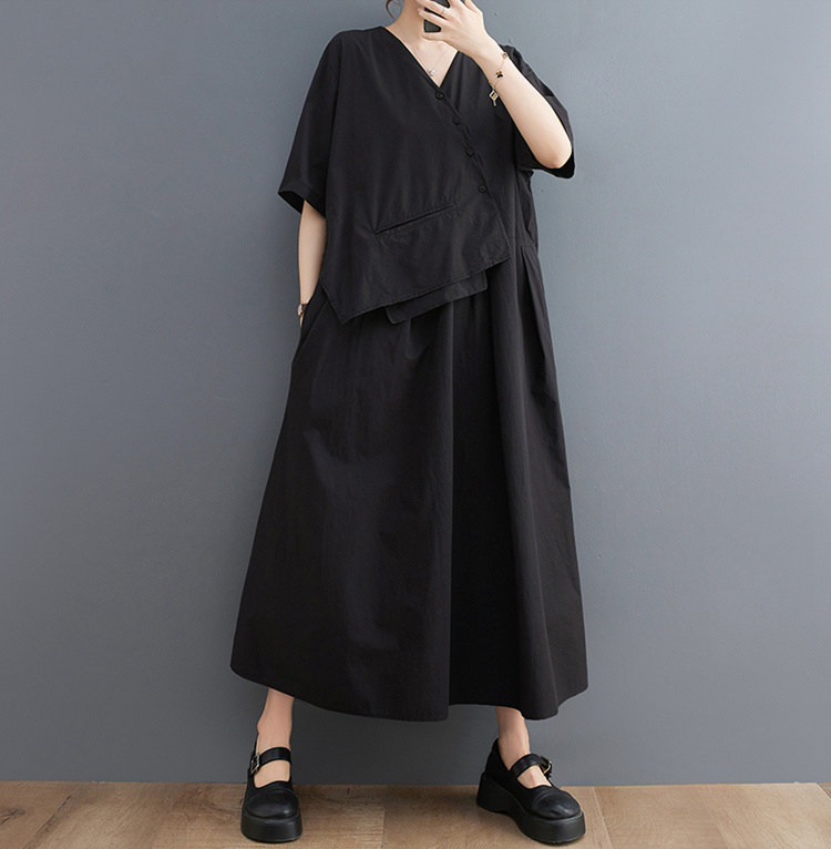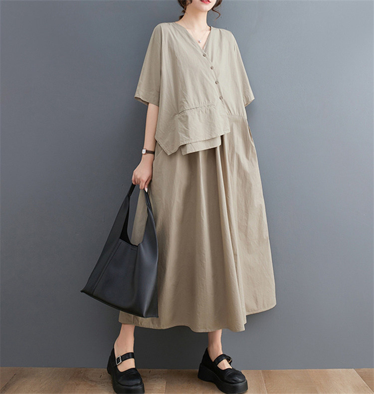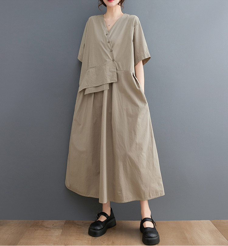 商品名 ワンピース レディース 花柄ワンピース 半袖 バンドカラー ロング丈 総柄 ビッグシルエット マキシ丈ワンピース 春 夏 ロングシャツ ハーフボタン ティアード カジュアル ギャザー Aライン ゆったり きれいめ フレア 上品 ロングワンピース 花柄 コットン 綿 体型カバー