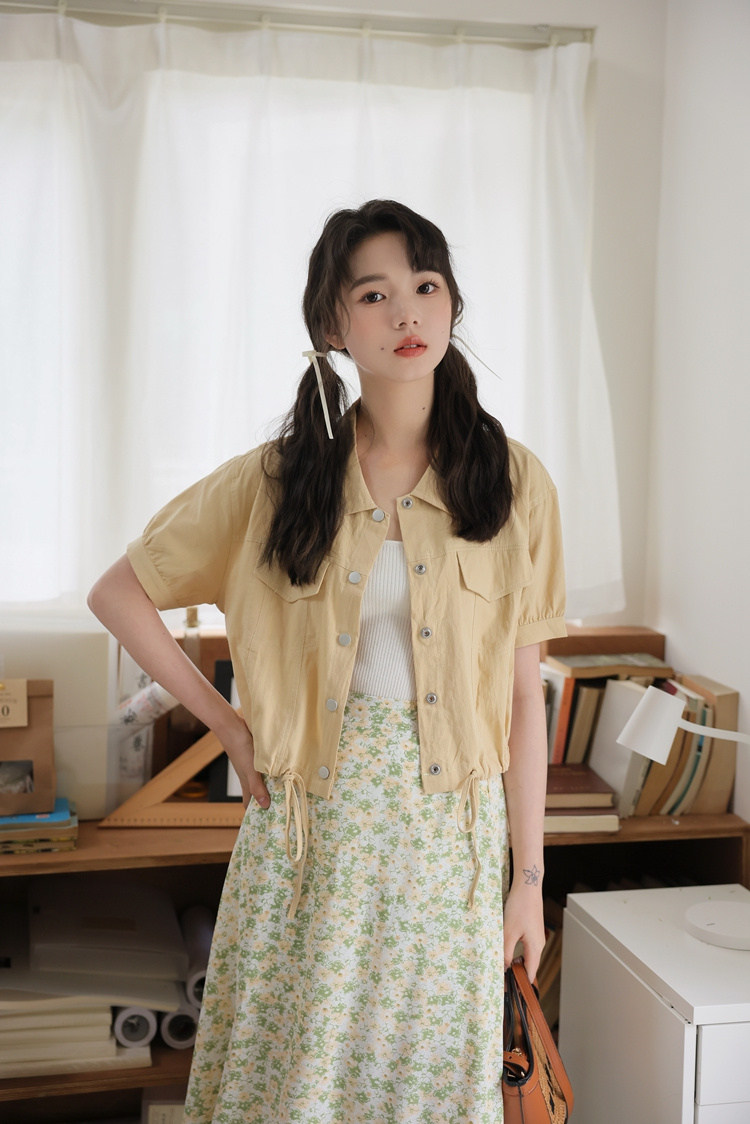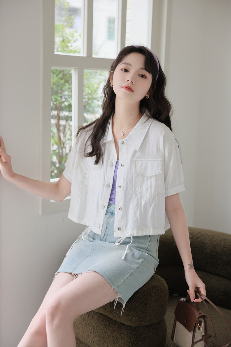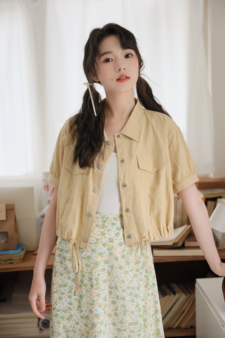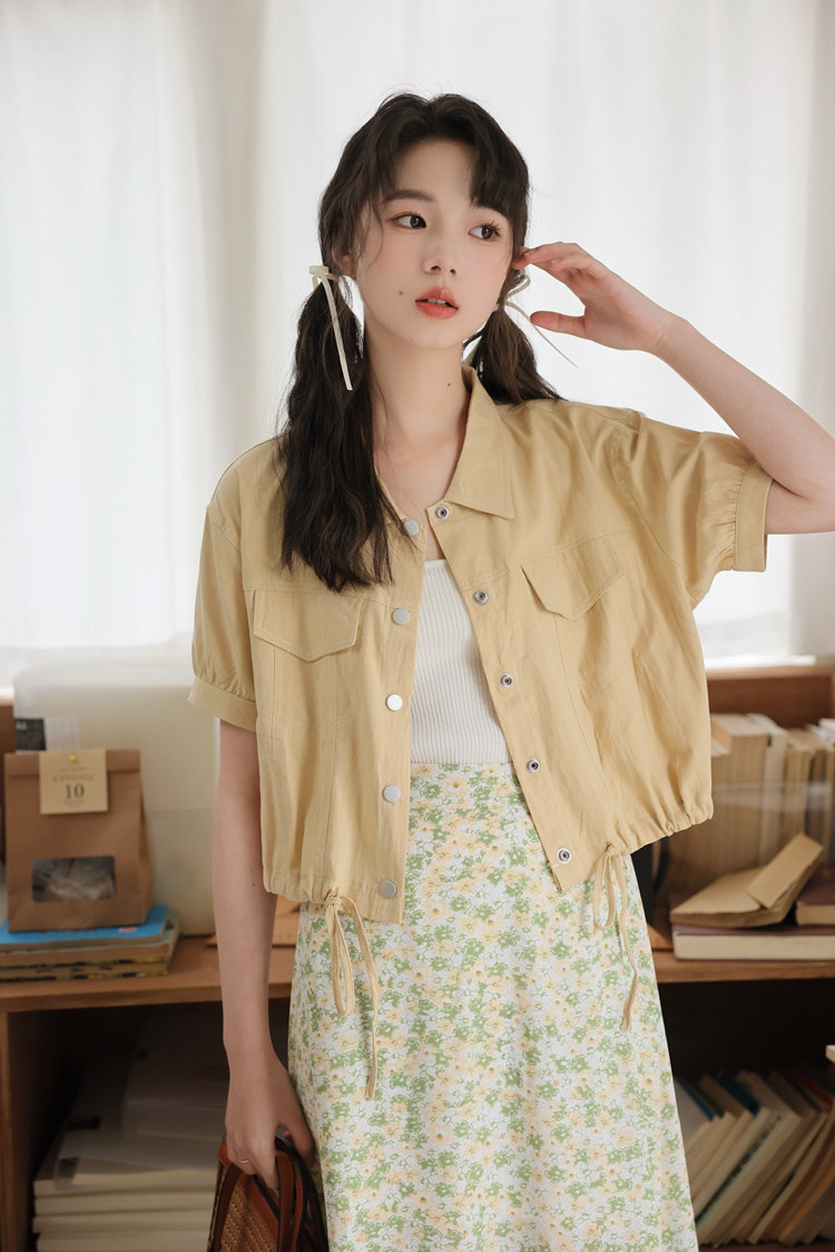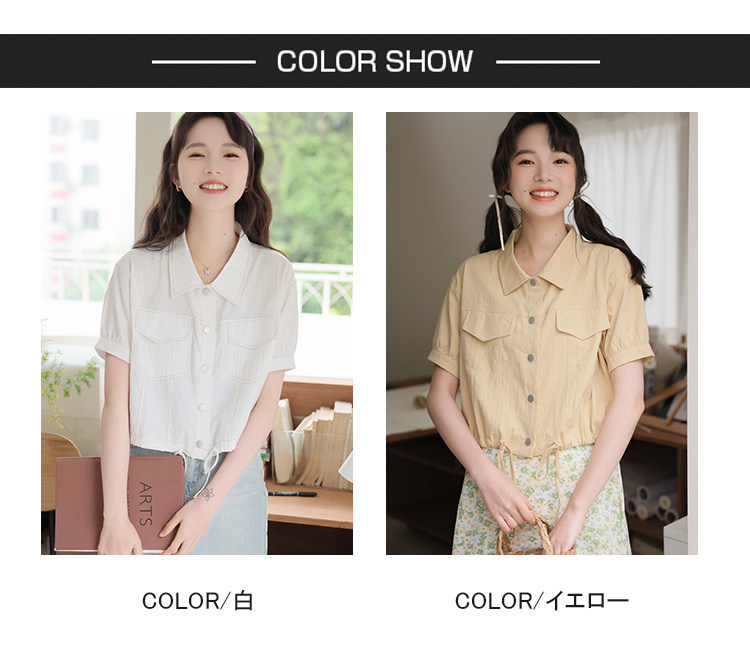 商品名 シャツ アウター レディース 半袖 トップス 無地 デザイン 羽織り ショート丈 シャツカラー 春夏 秋 ジャケット ボタン おしゃれ 可愛い トレンド カジュアル 春 春服 夏服 大きいサイズ ゆったり 通勤通学 きれいめ シンプル