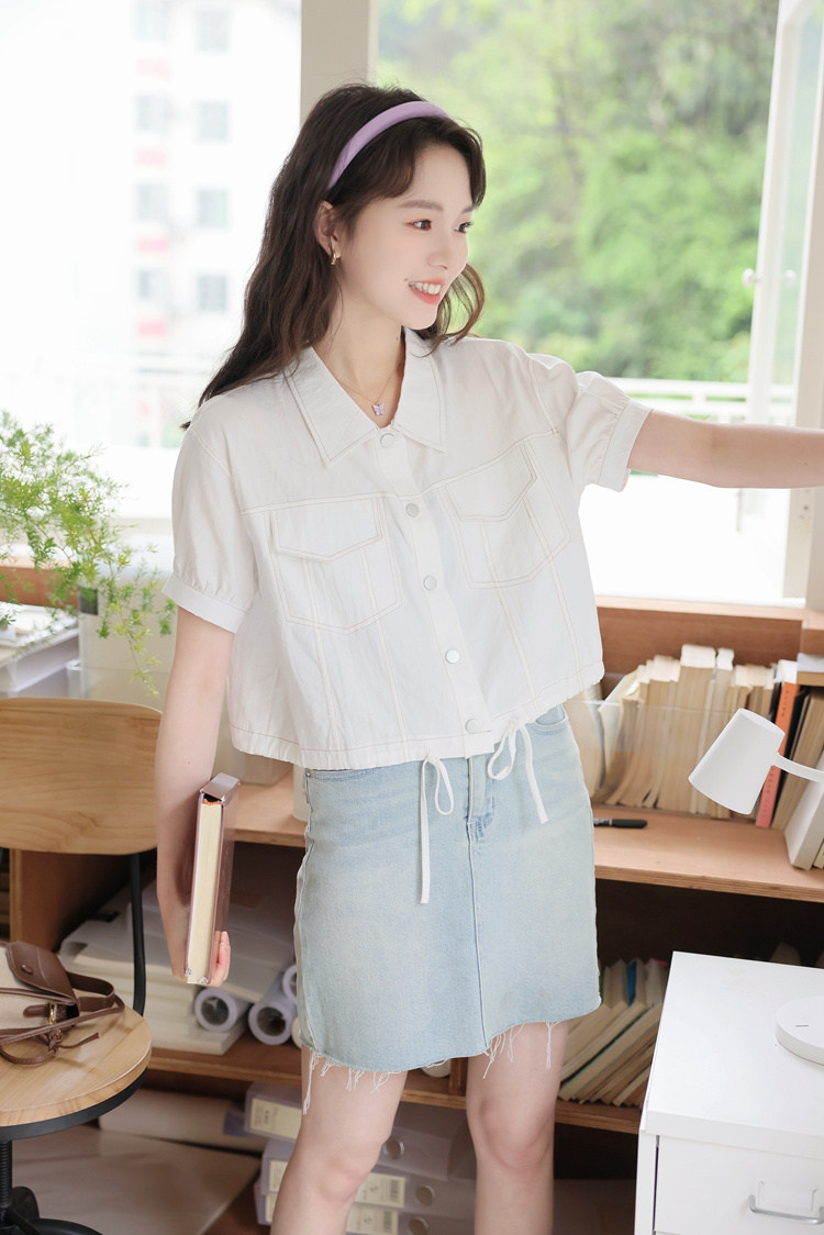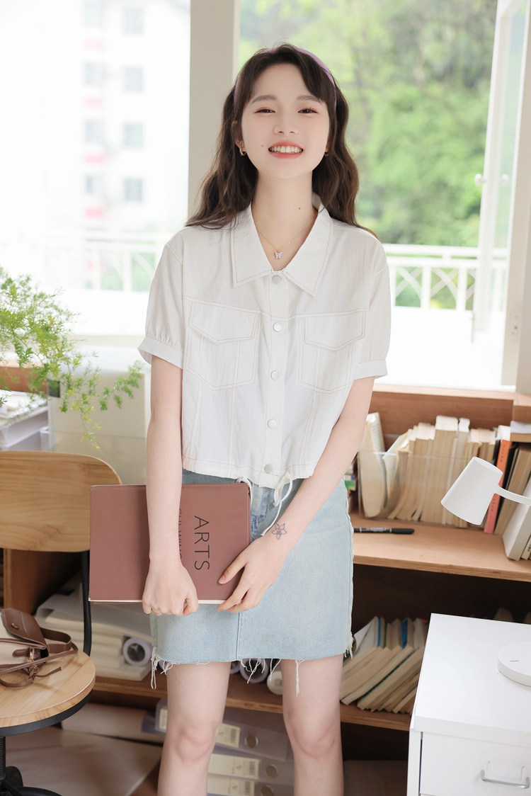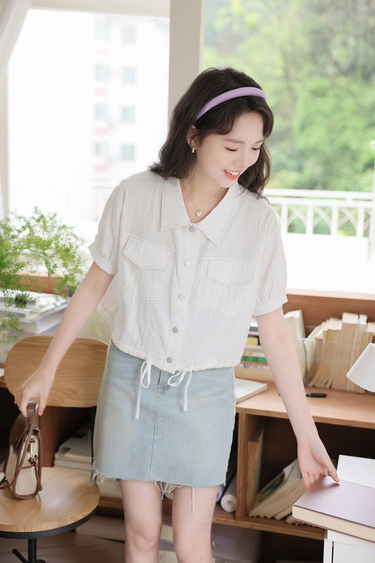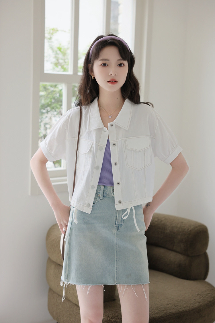 商品名 シャツ アウター レディース 半袖 トップス 無地 デザイン 羽織り ショート丈 シャツカラー 春夏 秋 ジャケット ボタン おしゃれ 可愛い トレンド カジュアル 春 春服 夏服 大きいサイズ ゆったり 通勤通学 きれいめ シンプル