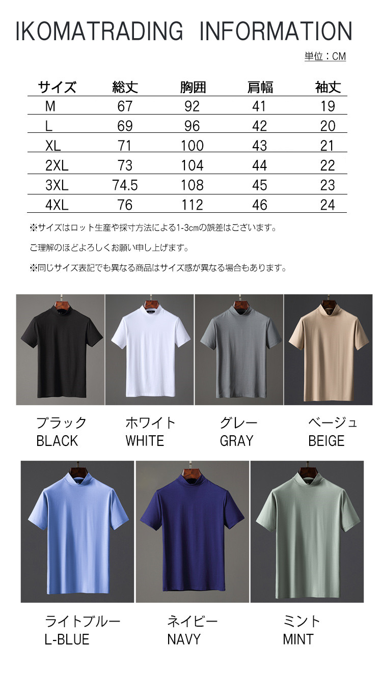 ※お取り扱い前に、商品付属タグの記載もご確認下さい。商品情報商品名 tシャツ ハイネック メンズ レディース ユニセックス トップス 半袖 Tシャツ モックネックシャツ インナー素材 綿 ポリエステルカラー 黒(black)|ホワイト(white)|グレー(gray)|ベージュ(beige)|ライトブルー(l-blue)|ネイビー(navy)|ミント(mint green)サイズ M|L|XL|2XL|3XL|4XL生産国 中国包装について 環境保護の観点から、「簡易包装」を推進しております明細書について 当店ではエコロジーと個人情報流出防止のため、ご指示の無い限り明細書を発行しておりません。