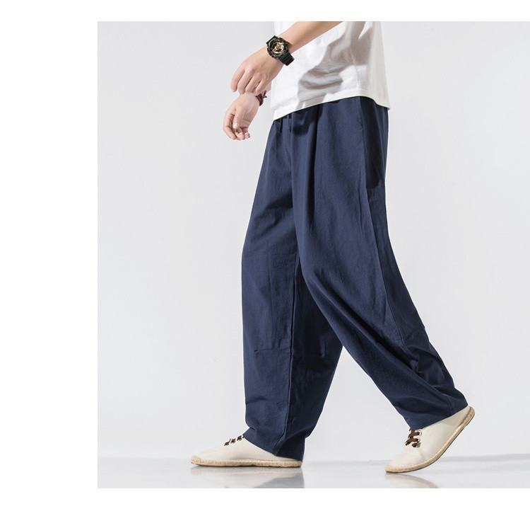 商品名 パンツ メンズ ボトムス ズボン 綿麻パンツ サルエルパンツ ワイドパンツ ロング丈 9分丈 ウエストゴム