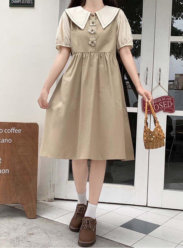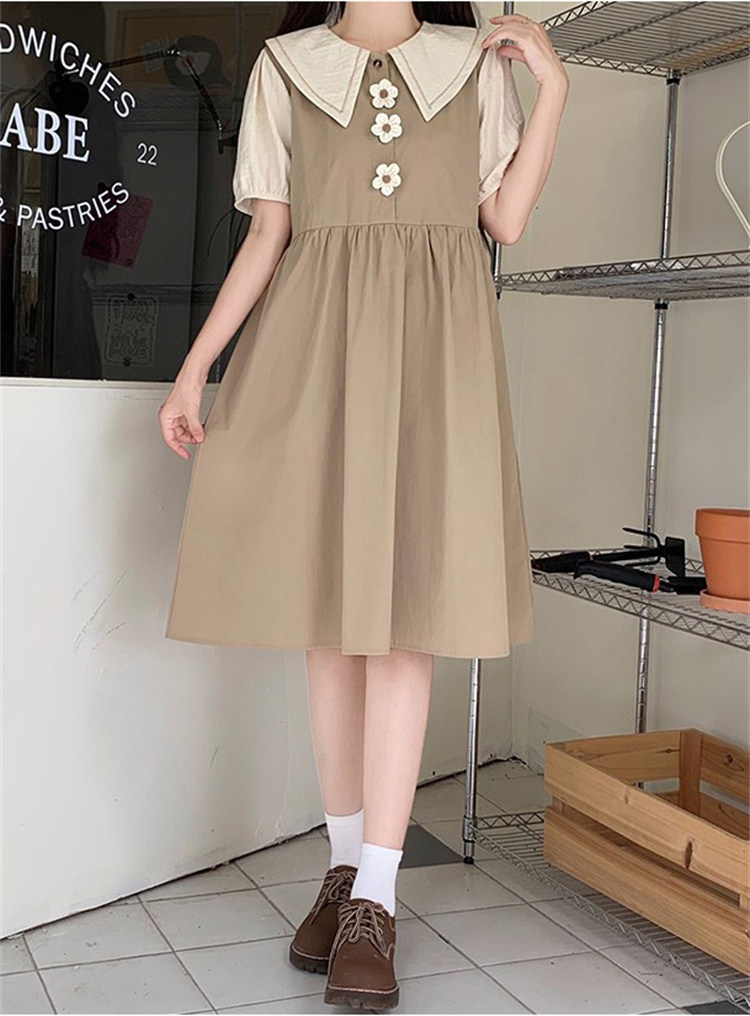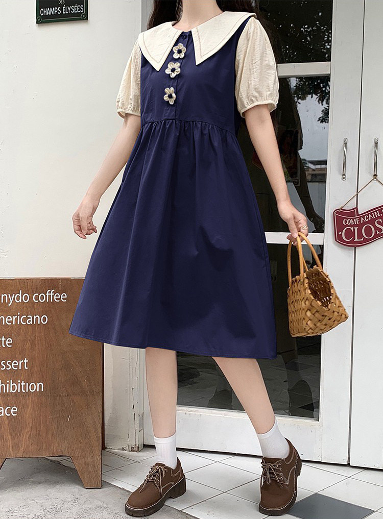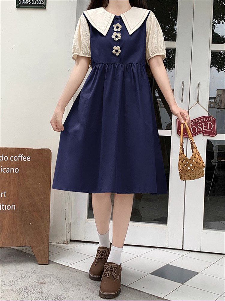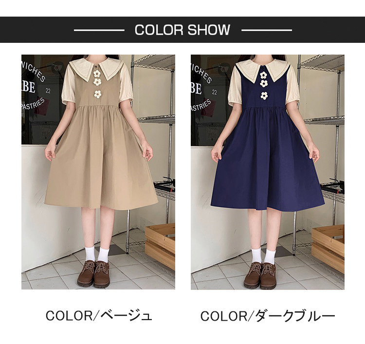 商品名 制服風 ワンピース レディース 半袖 セーラーワンピース 女の子 ビッグカラー 女子高生 学生服 ロングワンピ 通学 学生清純 Aライン 学園可愛い ガールズ コスプレ ハロウィン仮装 カジュアル 上品 日常 カジュアル きれいめ 文化祭 フェイクレヤード