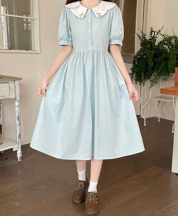 商品名 セーラーワンピース 制服風 ワンピース レディース 半袖 女の子 ビッグカラー 夏 学園可愛い ガールズ コスプレ ハロウィン仮装 学生服 ロングワンピ 通学 学生清純 Aライン カジュアル 夏服 日常 カジュアル きれいめ 文化祭 女子高生 学園祭 お洒落 吸汗