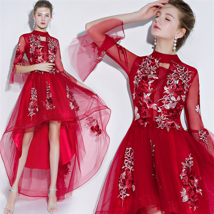 ブルー グレー レッドマキシ丈二次会ドレス パーティードレスミディアムドレストレーンフォーマルドレスロング丈ワンピース二次会演出司会 結婚式お呼ばれ