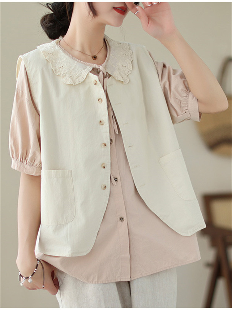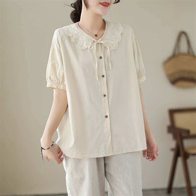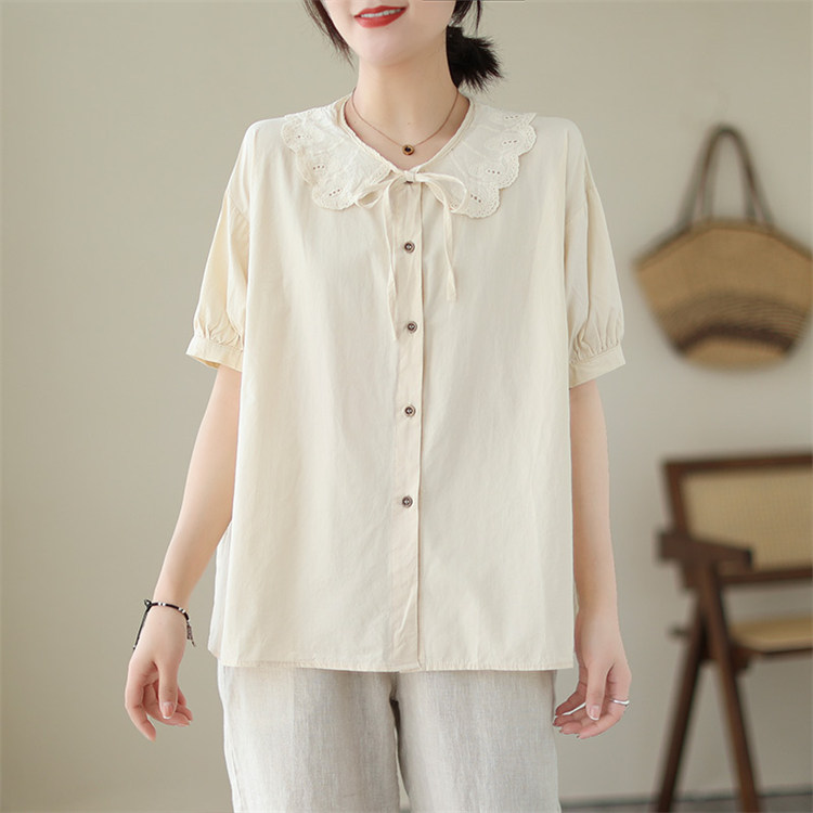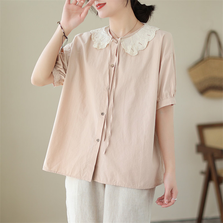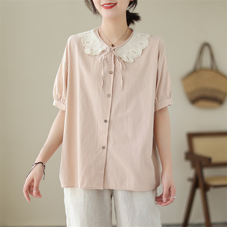 商品名 ブラウス レディース トップス 半袖 ビッグカラー シャツ 無地 襟付き レイヤード 重ね着 カジュアル オトナ 春夏 かわいい 仕事 通勤通学 オシャレ デカ襟 レース襟 きれいめ 20代 30代 プレゼント ゆったり 大きいサイズ デート 同窓会 文化祭 オフィス