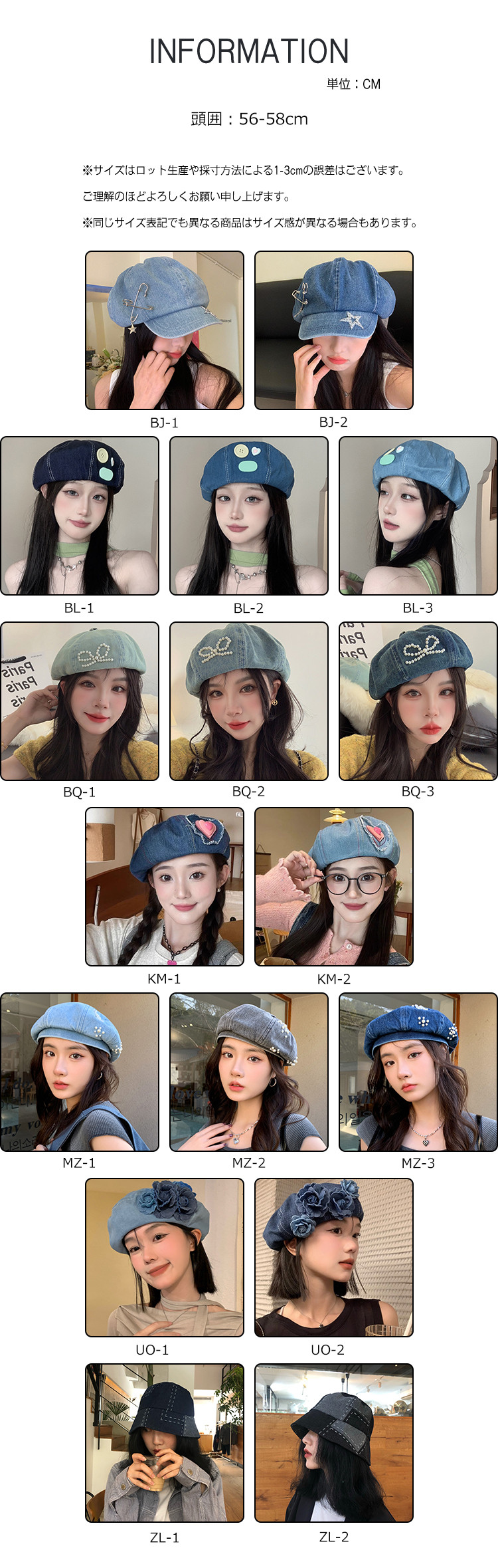 商品名 ベレー帽 デニム レディース 帽子 ハット 春 夏 デザイン 大人 かわいい おしゃれ ゆったり カジュアル