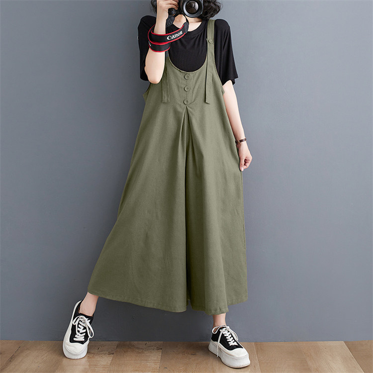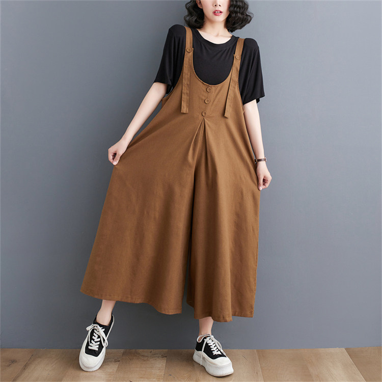サロペット パンツ ロング丈 ボトムス 綿麻 春夏 オールインワン 仕事 重ね着 オシャレ 女性レディースファッション オールインワン サロペット