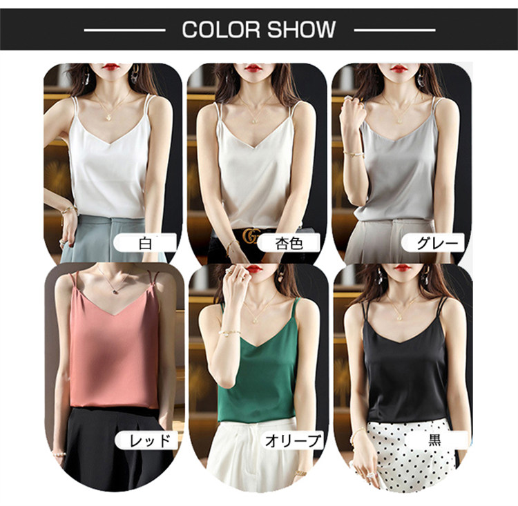 ※お取り扱い前に、商品付属タグの記載もご確認下さい。商品情報商品名 キャミソール タンクトップ レディース Vネック インナー トップス 大きいサイズ スーツインナー 無地 光沢感 ツルツル 薄手 袖なし ルームウェア 重ね着 肌着 部屋着 透けない 高品質 シャリ感 美肌 カジュアル セクシー 通勤性 コーデ ゆったり プレゼント 母の日素材 ポリエステルカラー 白|杏色|グレー|レッド|オリーブ|黒サイズ S|M|L|XL|2XL|3XL生産国 中国包装について 環境保護の観点から、「簡易包装」を推進しております明細書について 当店ではエコロジーと個人情報流出防止のため、ご指示の無い限り明細書を発行しておりません。