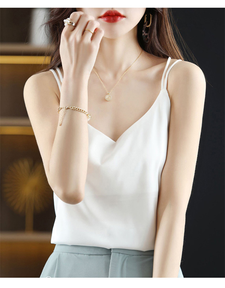 商品名 キャミソール タンクトップ レディース Vネック インナー トップス 大きいサイズ スーツインナー 無地 光沢感 ツルツル 薄手 袖なし ルームウェア 重ね着 肌着 部屋着 透けない 高品質 シャリ感 美肌 カジュアル セクシー 通勤性 コーデ ゆったり プレゼント 母の日