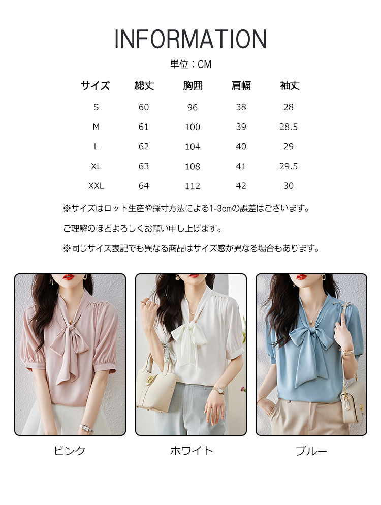 ※お取り扱い前に、商品付属タグの記載もご確認下さい。商品情報商品名 ブラウス レディース シャツ リボン vネック タック とろみ袖 無地 シンプル オフィス カジュアル 通勤素材 ポリエステルカラー ブルー|ホワイト|ピンクサイズ S|M|L|XL|XXL生産国 中国包装について 環境保護の観点から、「簡易包装」を推進しております明細書について 当店ではエコロジーと個人情報流出防止のため、ご指示の無い限り明細書を発行しておりません。