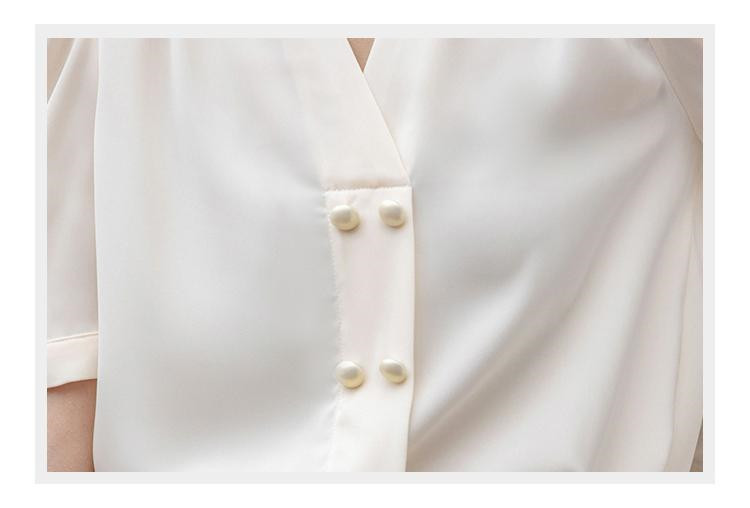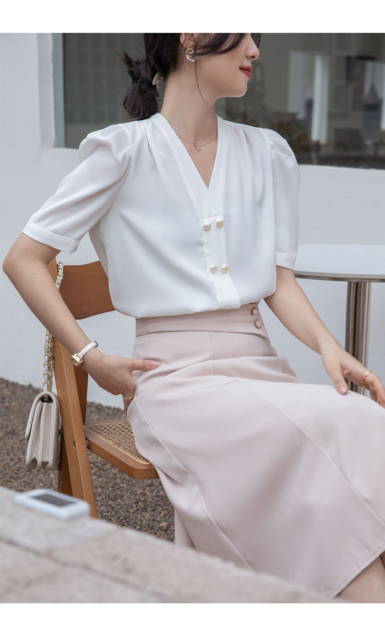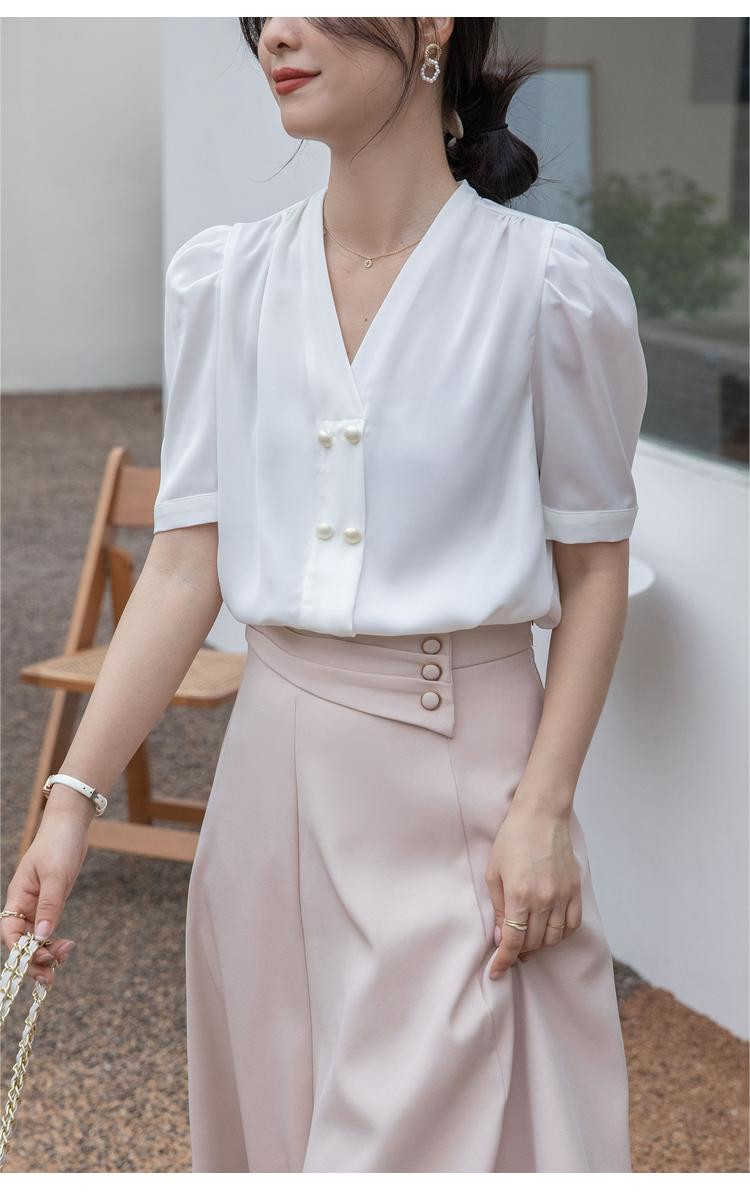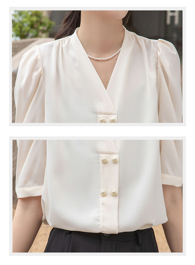 商品名 ブラウス レディース シャツ vネック ボリューム袖 プルオーバー 無地 シンプル オフィス カジュアル 通勤