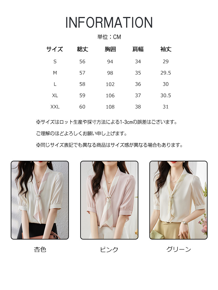 ※お取り扱い前に、商品付属タグの記載もご確認下さい。商品情報商品名 ブラウス レディース シャツ vネック スカーフ プルオーバー とろみ袖 デザイン オフィス カジュアル 通勤素材 ポリエステルカラー 杏色|グリーン|ピンクサイズ S|M|L|XL|XXL生産国 中国包装について 環境保護の観点から、「簡易包装」を推進しております明細書について 当店ではエコロジーと個人情報流出防止のため、ご指示の無い限り明細書を発行しておりません。