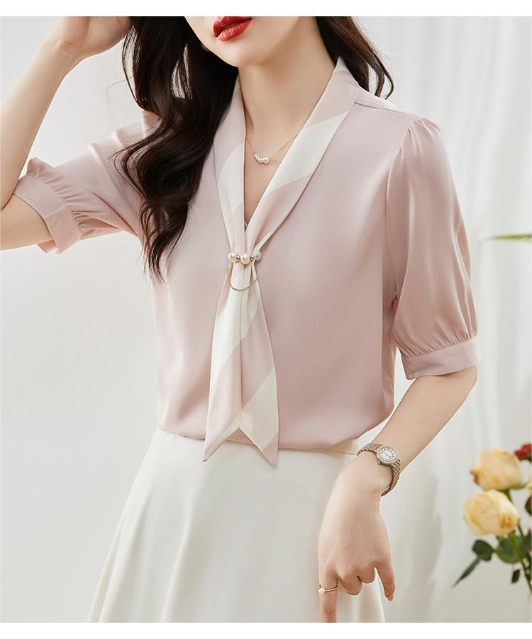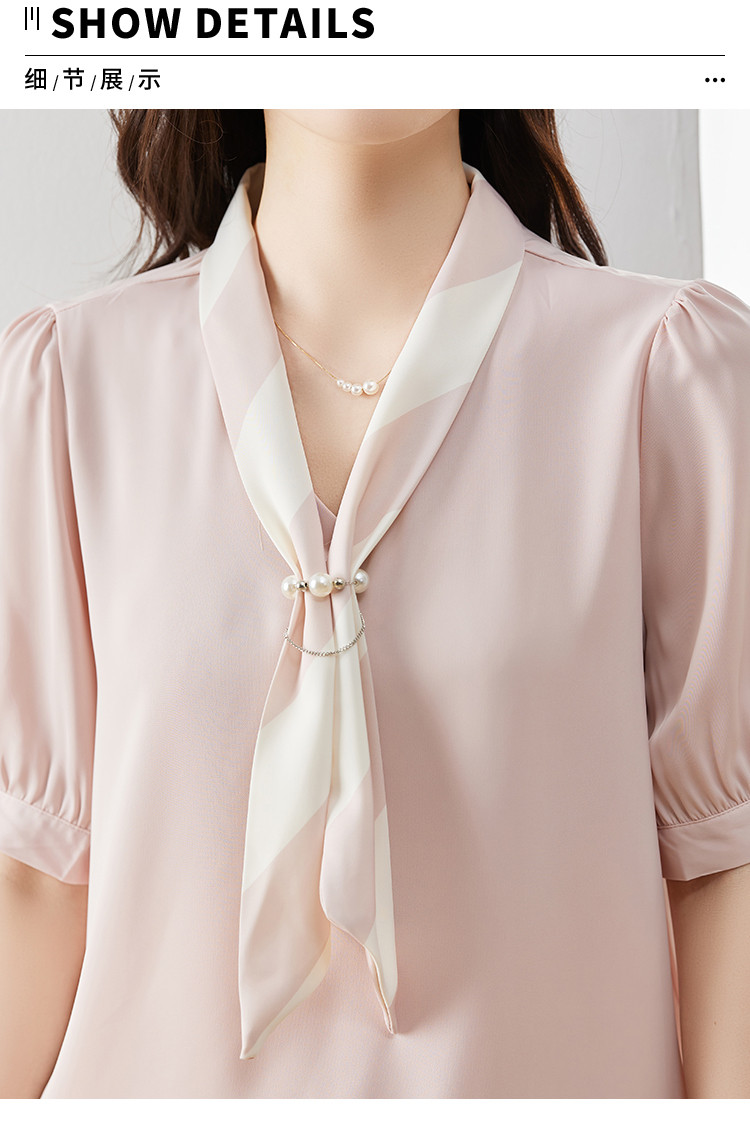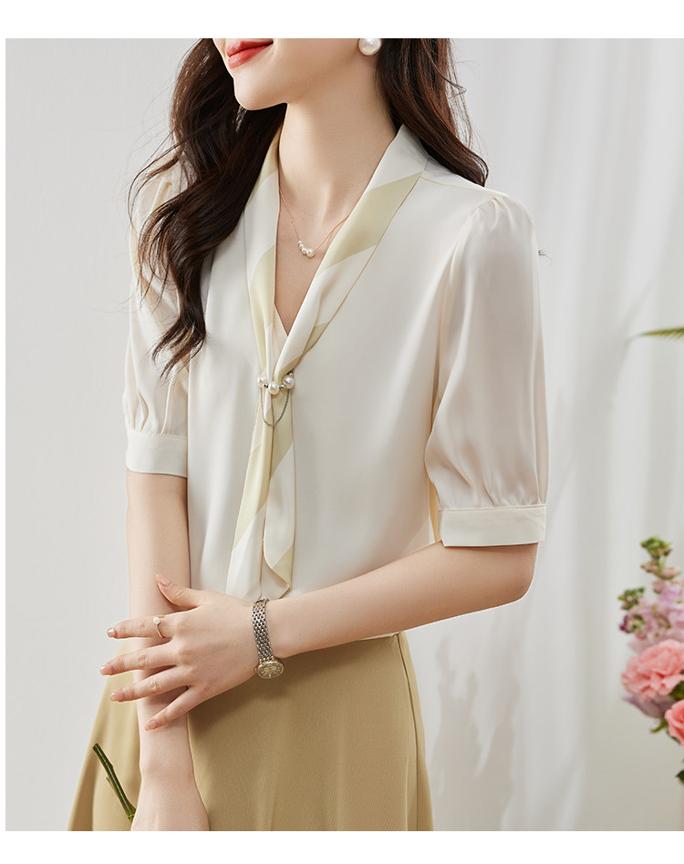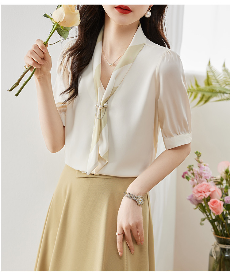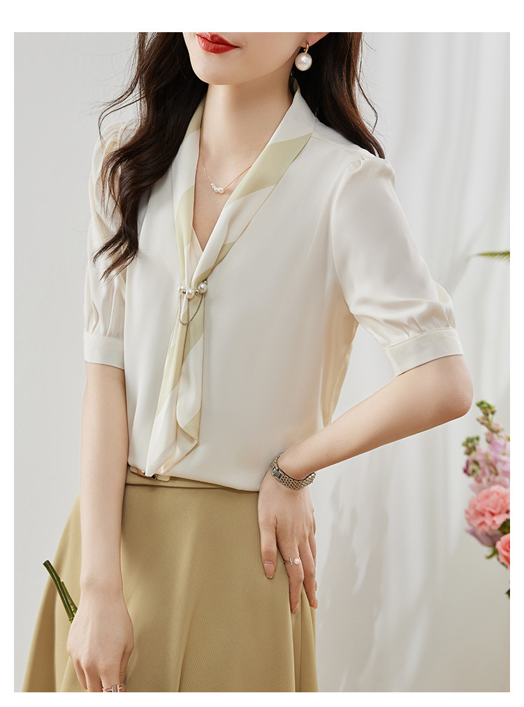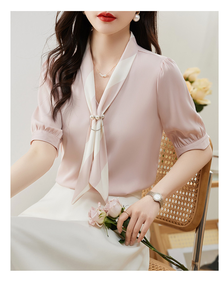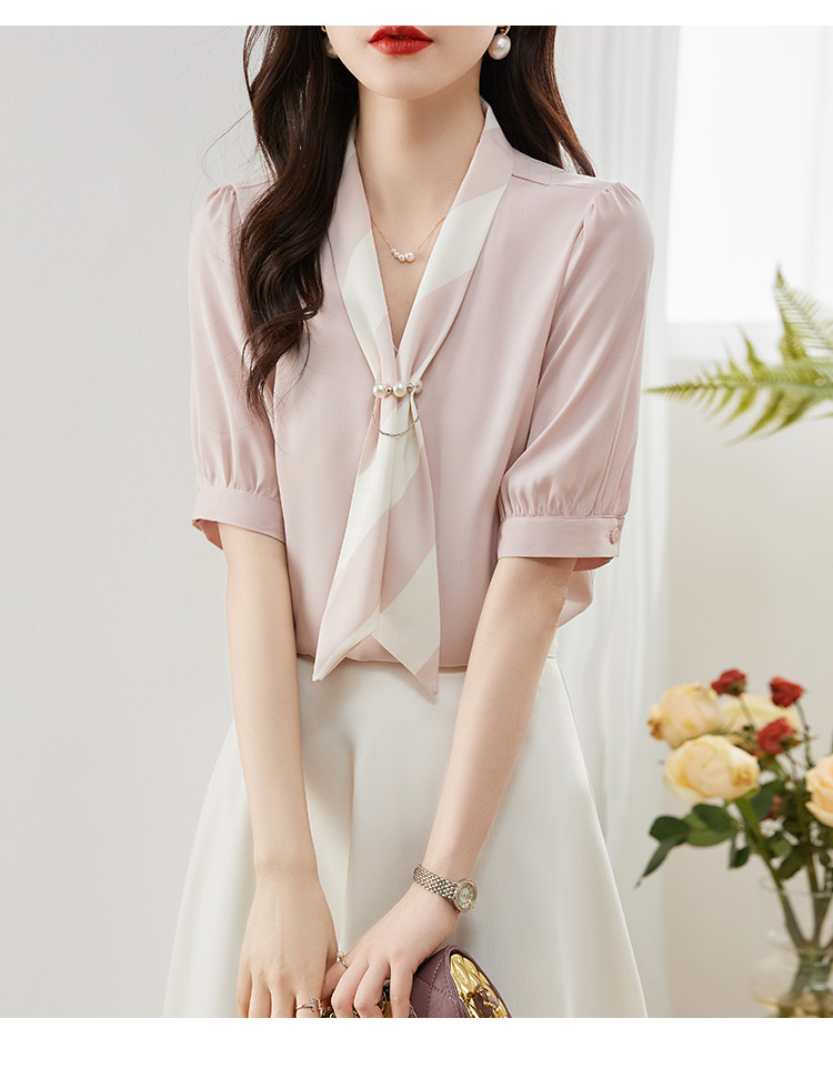 商品名 ブラウス レディース シャツ vネック スカーフ プルオーバー とろみ袖 デザイン オフィス カジュアル 通勤