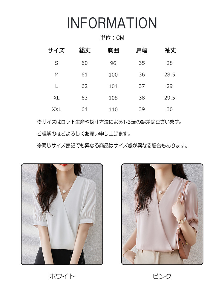 ※お取り扱い前に、商品付属タグの記載もご確認下さい。商品情報商品名 ブラウス レディース シャツ vネック プルオーバー 無地 タック とろみ袖 オフィス カジュアル 通勤 OL素材 ポリエステルカラー ホワイト|ピンクサイズ S|M|L|XL|XXL生産国 中国包装について 環境保護の観点から、「簡易包装」を推進しております明細書について 当店ではエコロジーと個人情報流出防止のため、ご指示の無い限り明細書を発行しておりません。