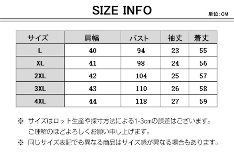 サイズ L|XL|2XL|3XL|4XL