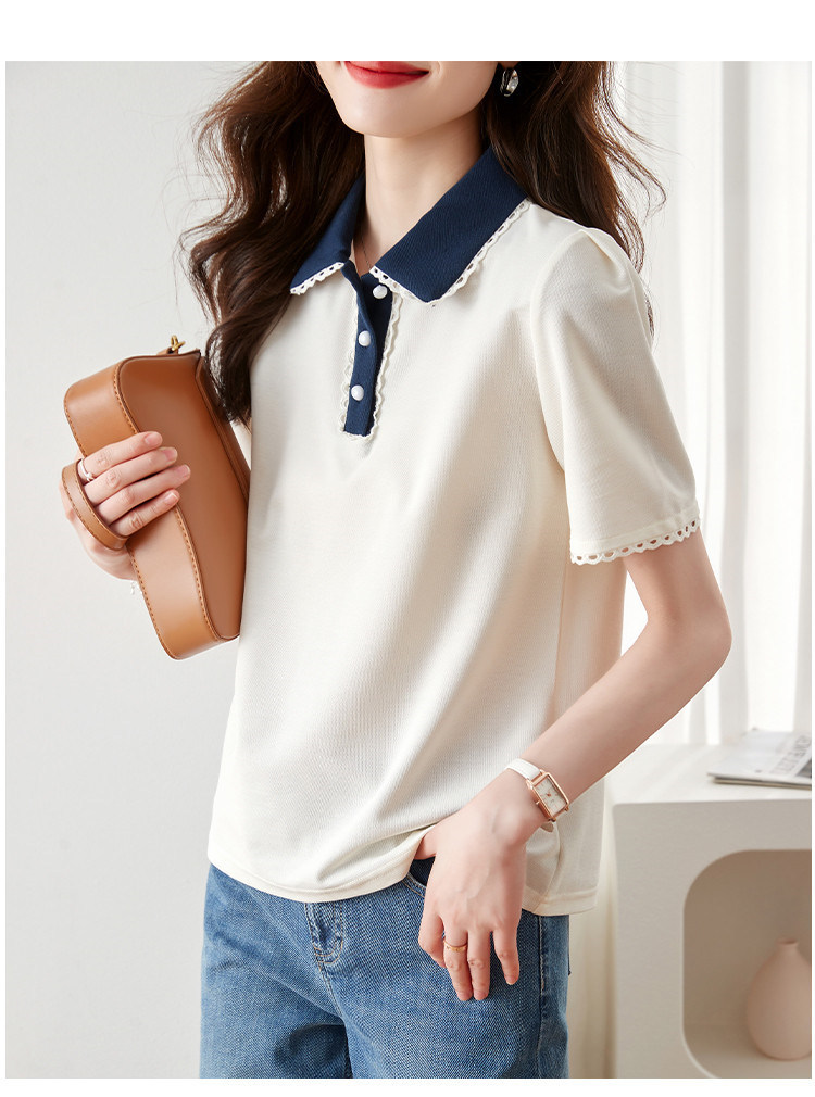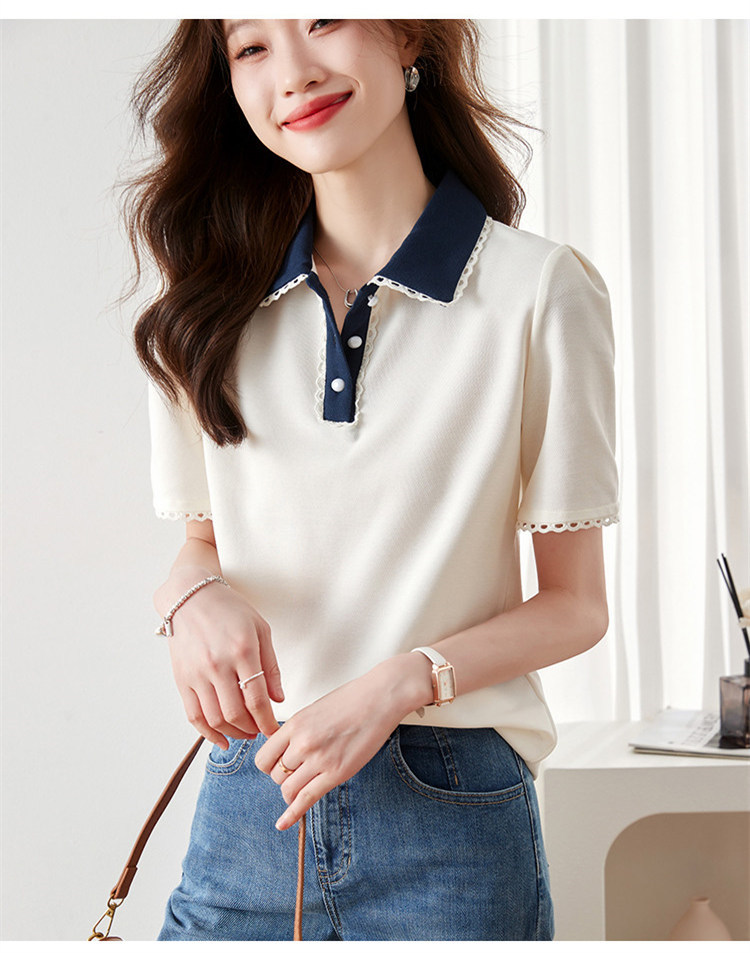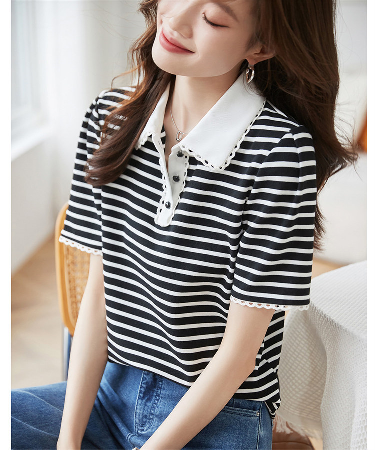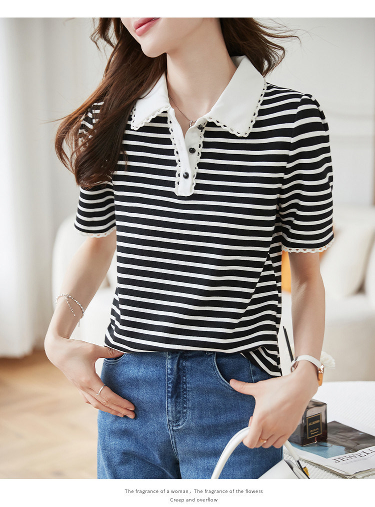 商品名 ポロシャツ シャツ レディース 半袖 レース プルオーバー ボーダー 夏 トップス 通勤通学 ポロ襟 上品 夏用 おしゃれ 仕事 普段着 シンプル 無地 女子会 デート カジュアル 半袖ポロシャツ トレンド クールビズ お出かけ 可愛い 母の日 プレゼント 20代 30代 切り替え