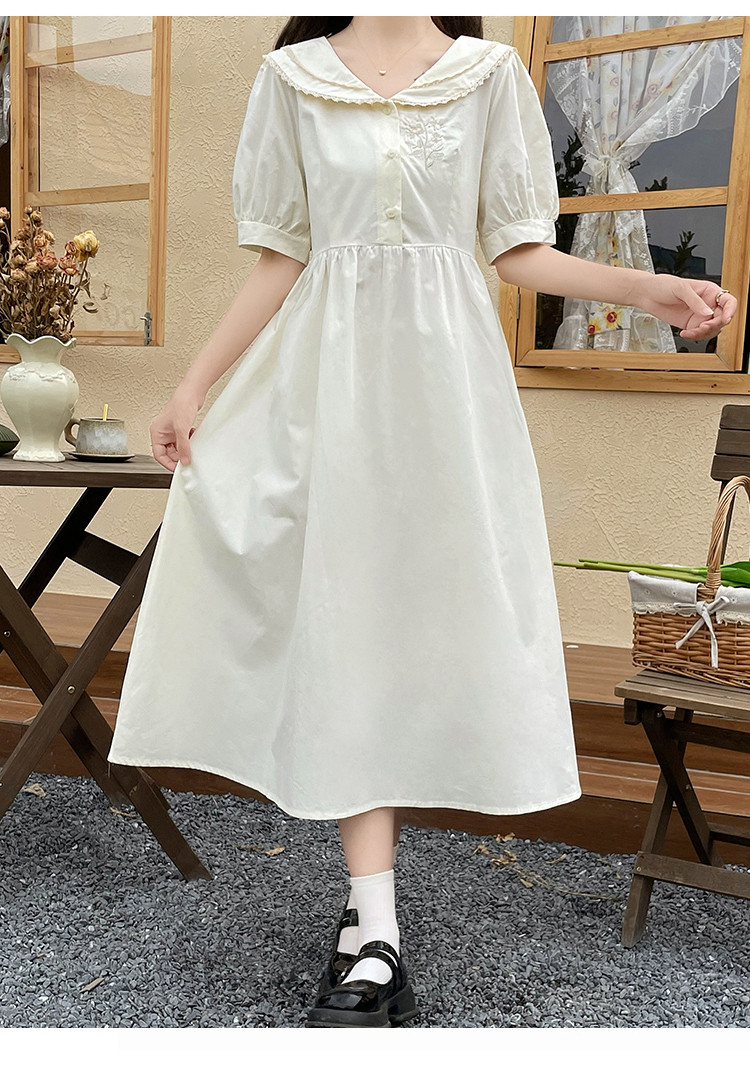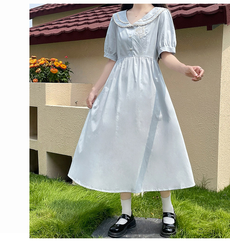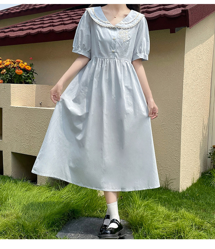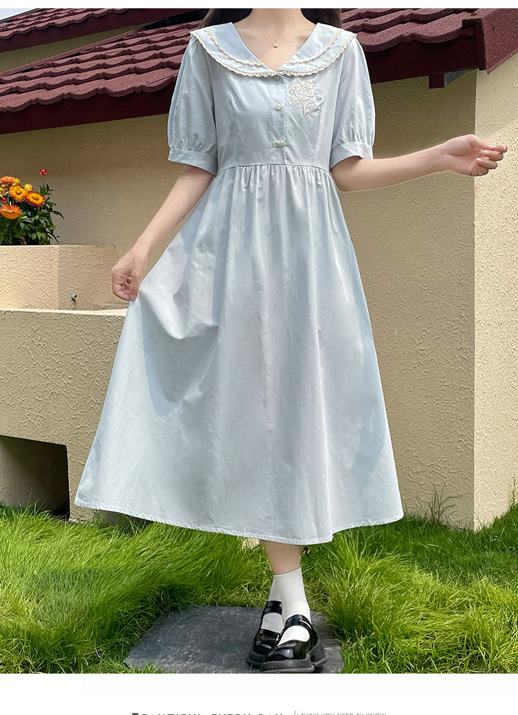 商品名 ワンピース レディース スクール風 制服風 ワンピース ワンピ 膝下 半袖 ぽわん袖 Aラインスカート 春 夏