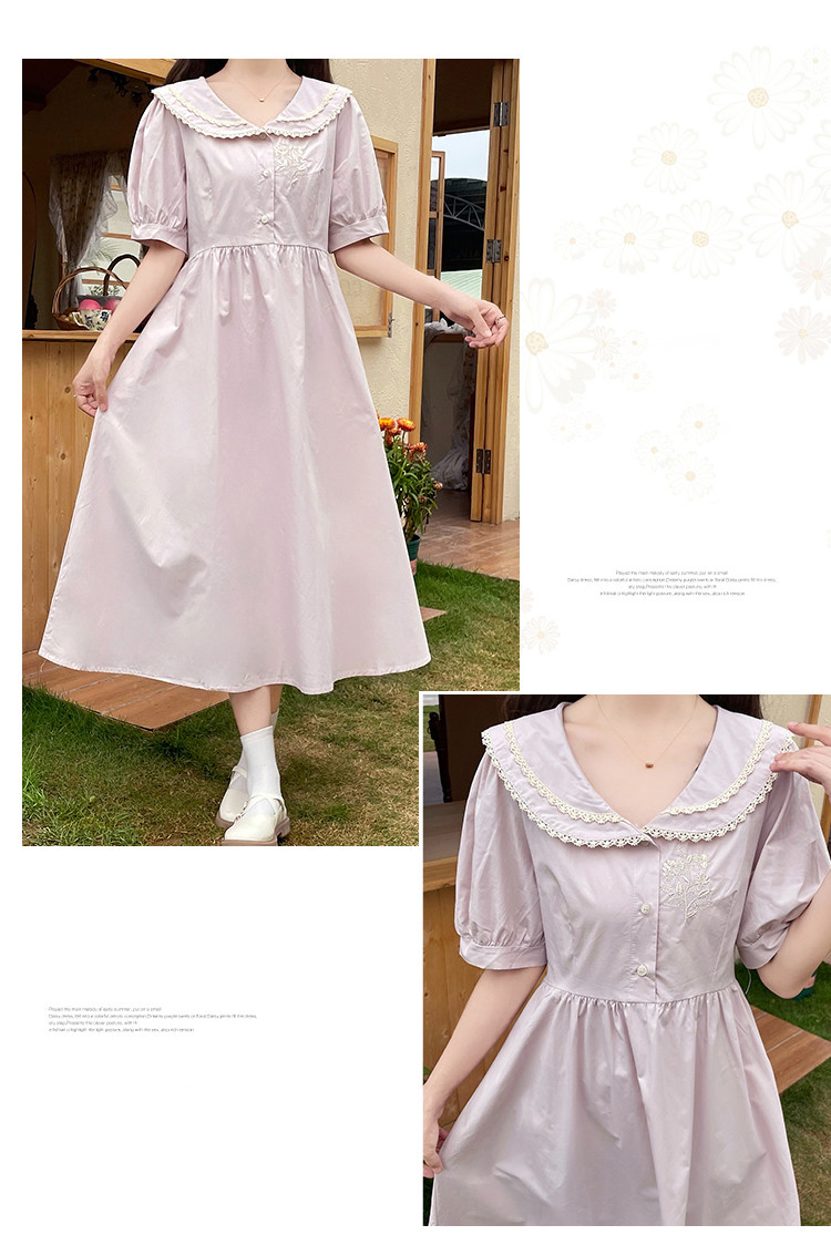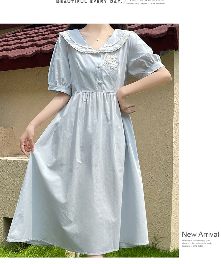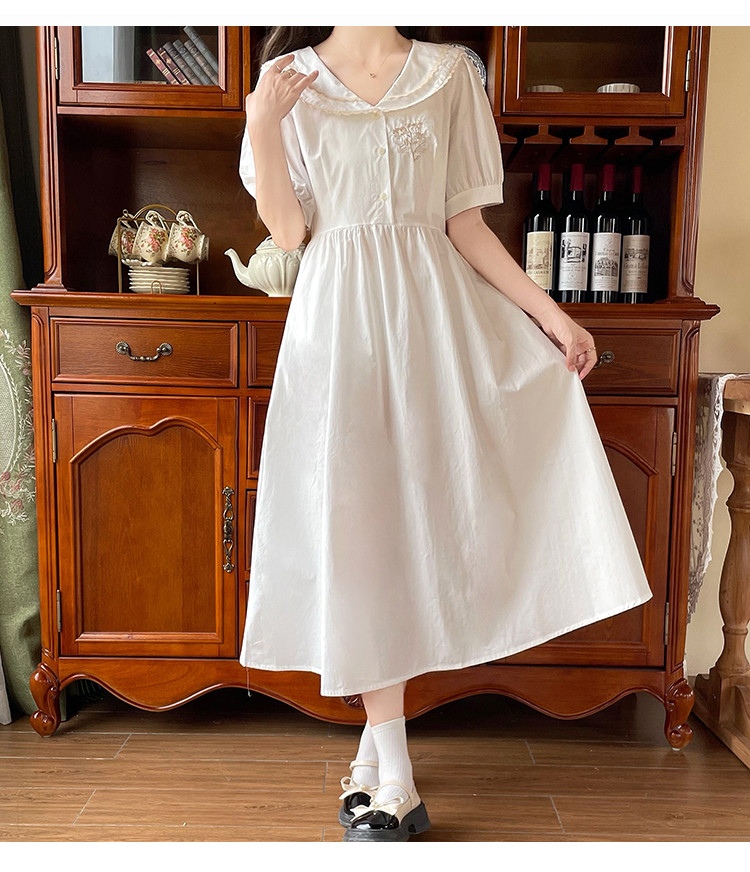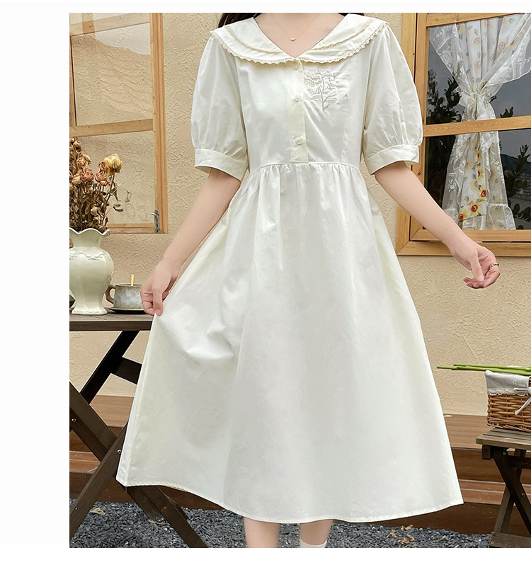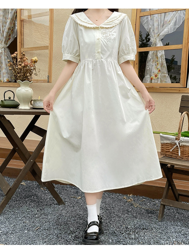 商品名 ワンピース レディース スクール風 制服風 ワンピース ワンピ 膝下 半袖 ぽわん袖 Aラインスカート 春 夏