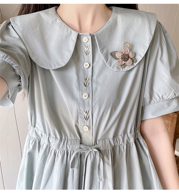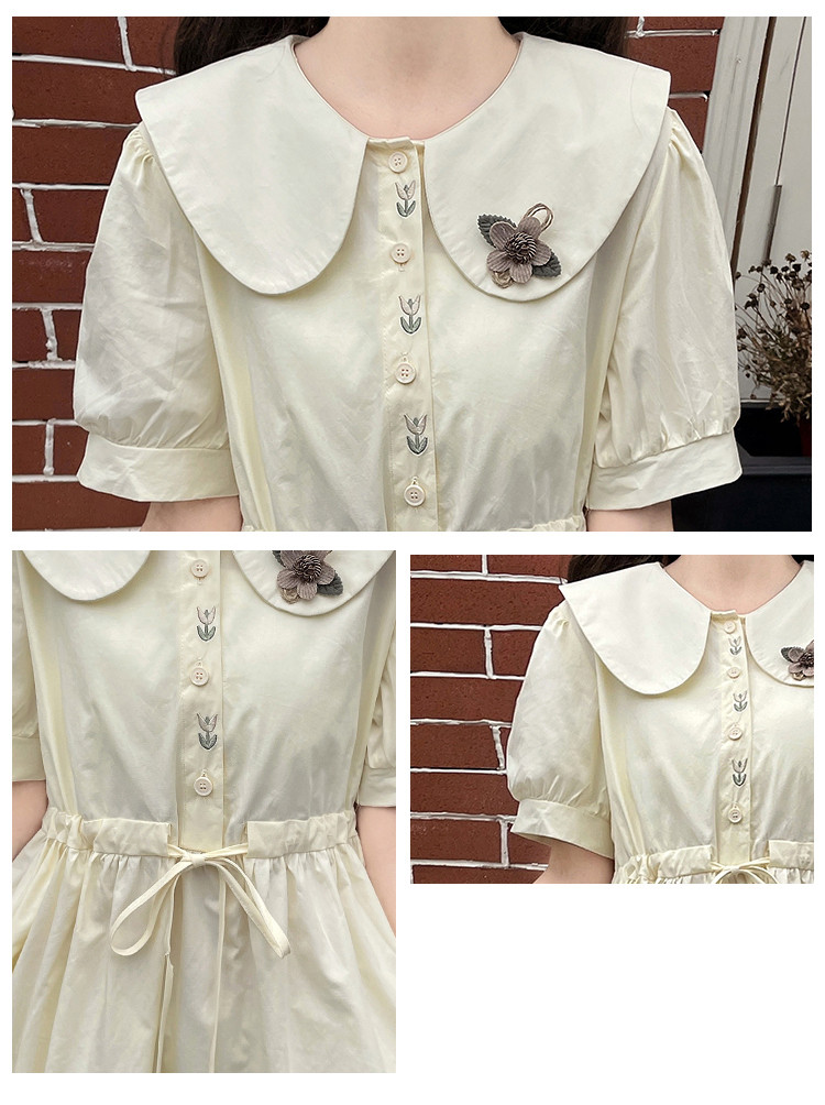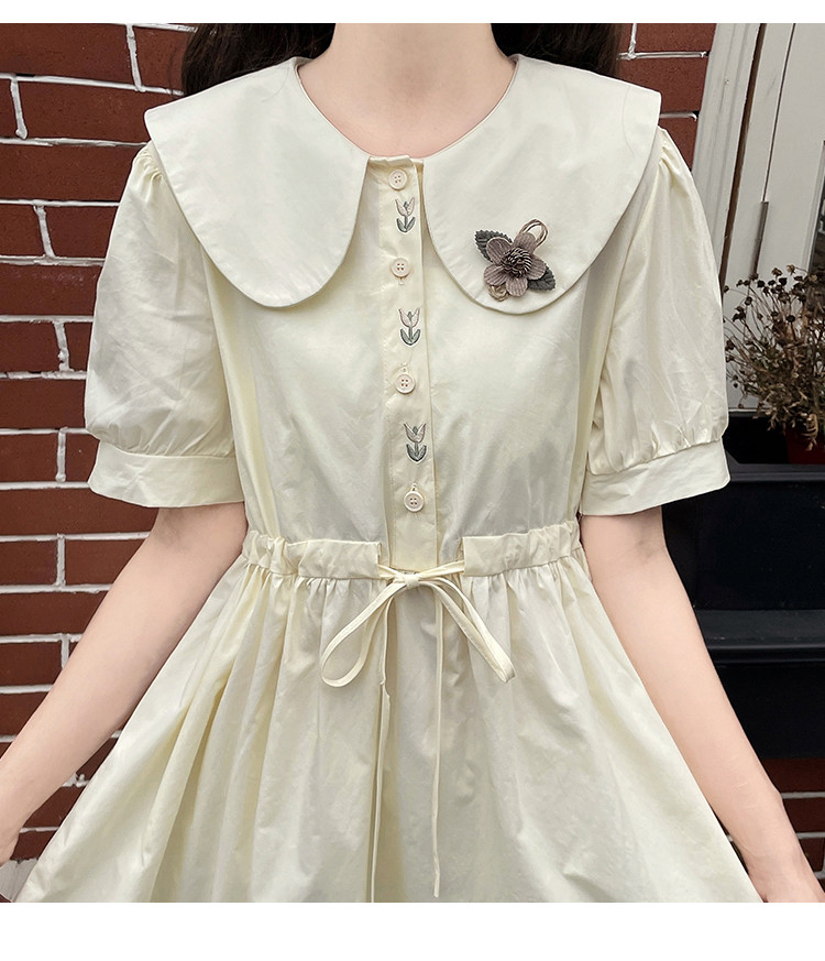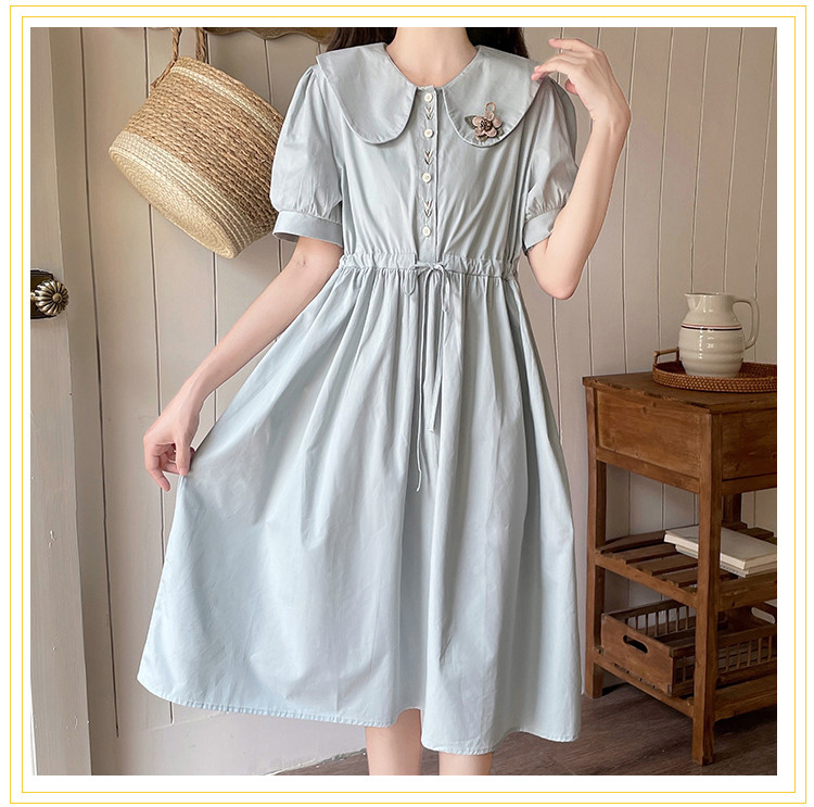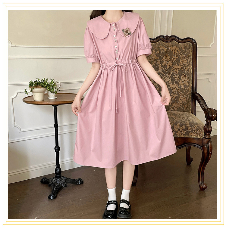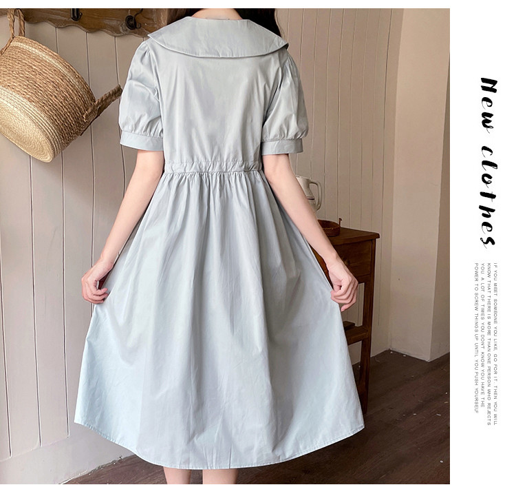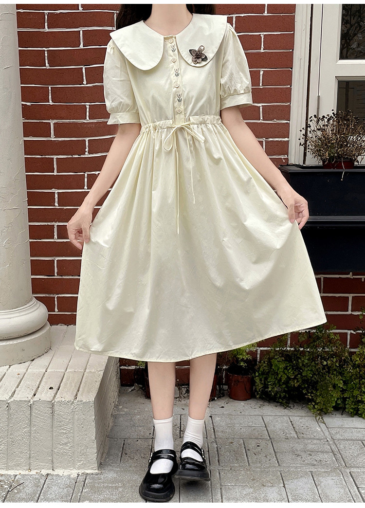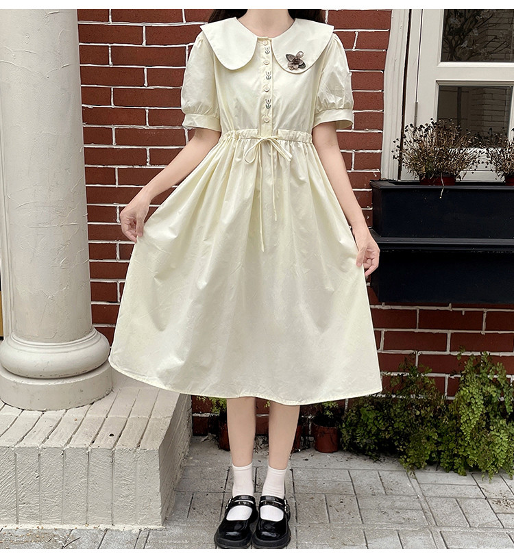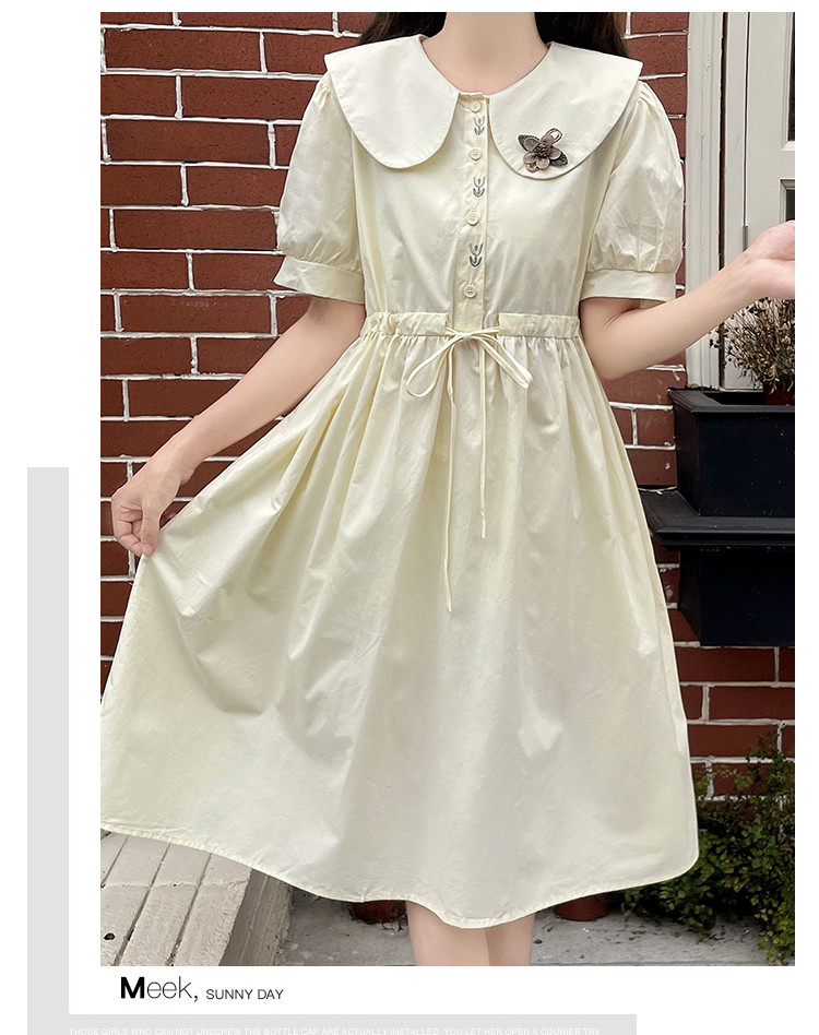 商品名 ワンピース レディース ワンピ 丸襟 ウエストリボン シャツワンピ Aラインスカート 膝下 カジュアル 夏物