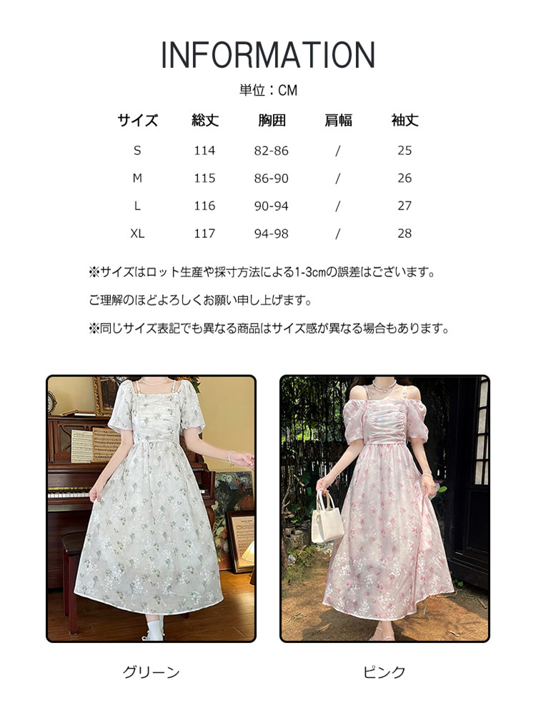 ※お取り扱い前に、商品付属タグの記載もご確認下さい。商品情報商品名 ワンピ レディース ワンピース ワンピース 花柄 スクエアネック ぽわん袖 ロング 膝下 カジュアル 夏物 夏素材 ポリエステルカラー グリーン|ピンクサイズ S|M|L|XL生産国 中国包装について 環境保護の観点から、「簡易包装」を推進しております明細書について 当店ではエコロジーと個人情報流出防止のため、ご指示の無い限り明細書を発行しておりません。
