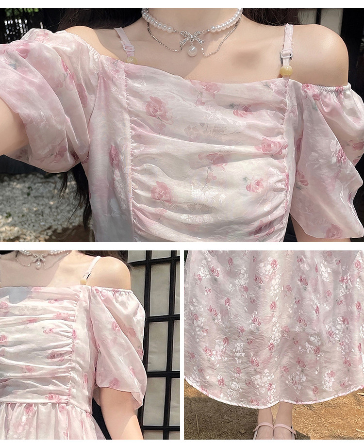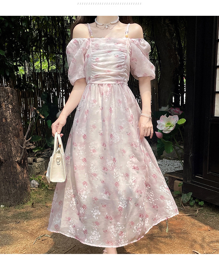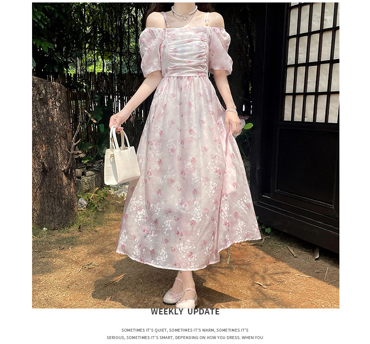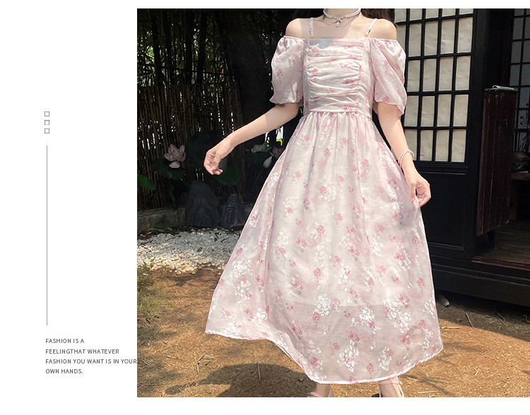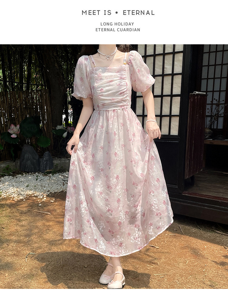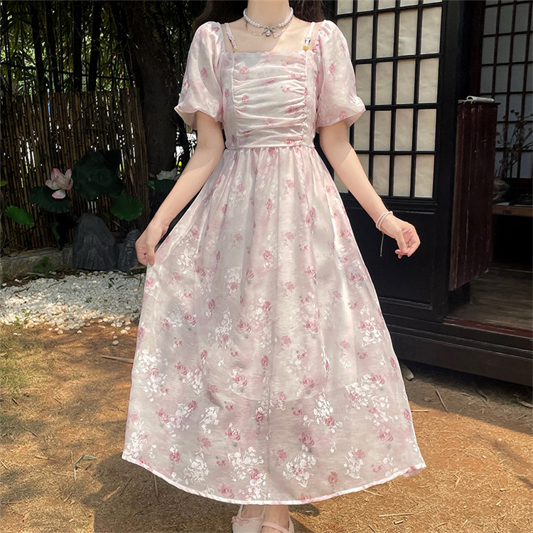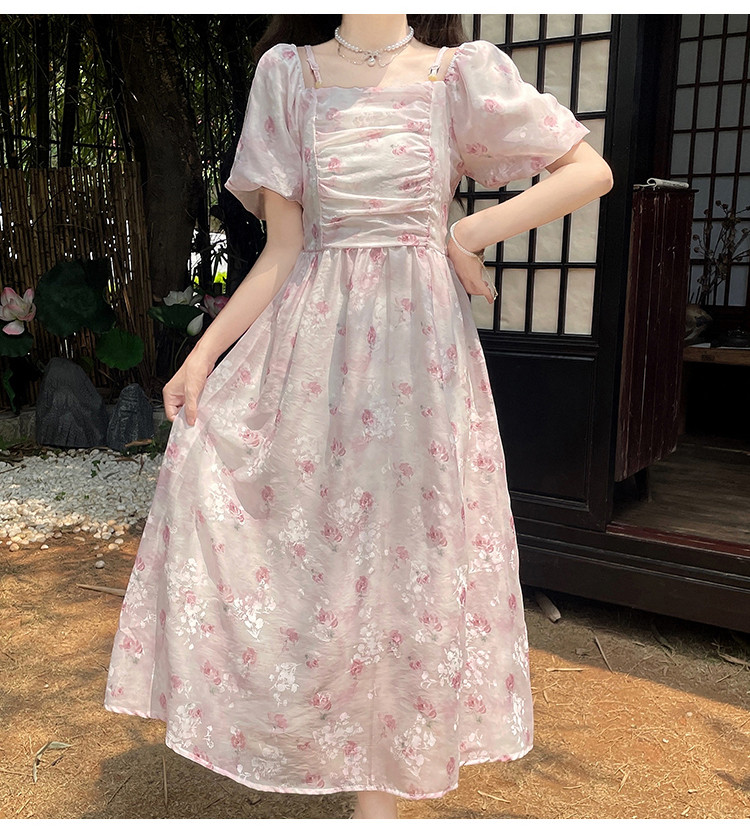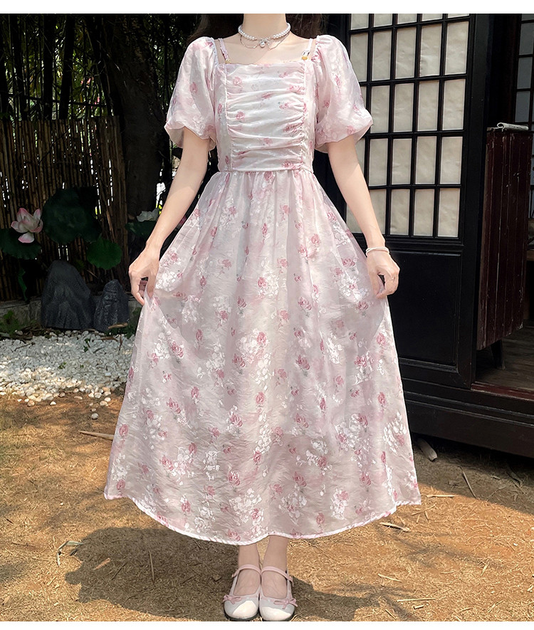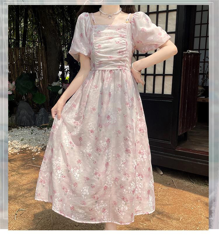 商品名 ワンピ レディース ワンピース ワンピース 花柄 スクエアネック ぽわん袖 ロング 膝下 カジュアル 夏物 夏
