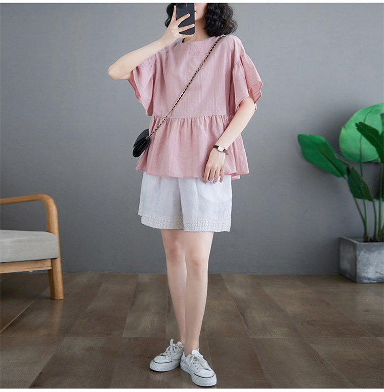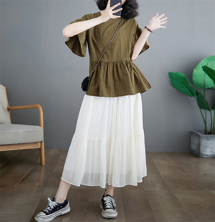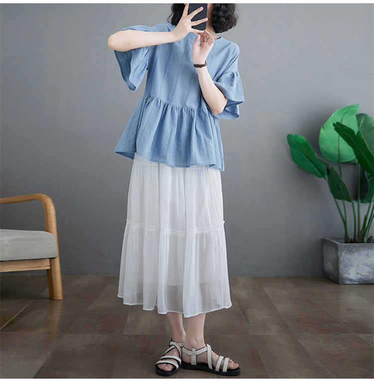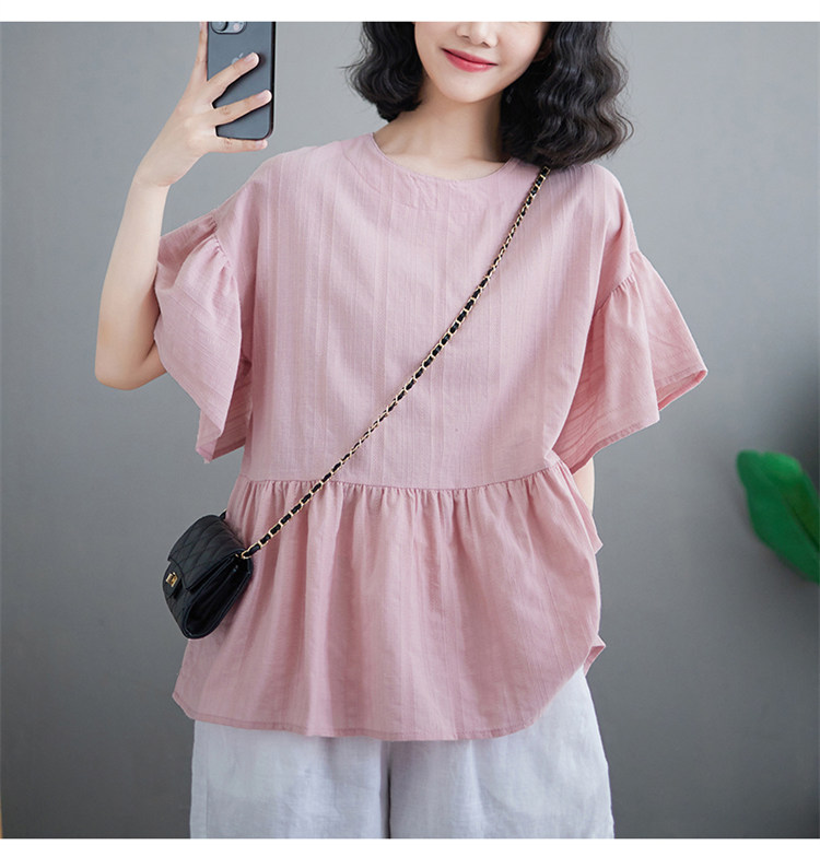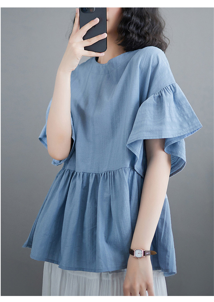 商品名 フレアスリーブブラウス レディース ブラウス 半袖 フレア袖 クルーネック 無地 トップス 夏 プルオーバー ギャザー フリル袖 無地 仕事 シンプル カジュアル かわいい フェミニン 大人 夏物 20代 30代 40代 おしゃれ 普段着 母の日 プレゼント 夏服 通勤通学