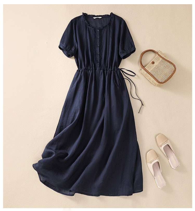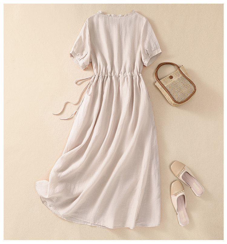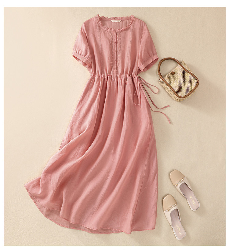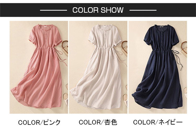ロングワンピース 半袖 無地 綿 麻 仕事 夏 リネンワンピース カジュアル おしゃれ マキシ丈レディースファッション ワンピース
