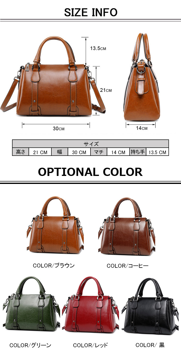 ※お取り扱い前に、商品付属タグの記載もご確認下さい。商品情報商品名 本革 バッグ 2way ショルダーバッグ トートバッグ レディース 通勤バッグ 大容量 上品 ビジネス おしゃれ素材 本革カラー ブラウン|コーヒー|グリーン|ブラック|レッドサイズ F生産国 中国包装について 環境保護の観点から、「簡易包装」を推進しております明細書について 当店ではエコロジーと個人情報流出防止のため、ご指示の無い限り明細書を発行しておりません。