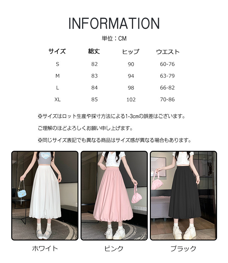 ※お取り扱い前に、商品付属タグの記載もご確認下さい。商品情報商品名 スカート レディース ウエストゴム ハイウエスト ジャカード ボリューム ロングスカート 可愛い カジュアル素材 ポリエステルカラー ブラック|ピンク|ホワイトサイズ S|M|L|XL生産国 中国包装について 環境保護の観点から、「簡易包装」を推進しております明細書について 当店ではエコロジーと個人情報流出防止のため、ご指示の無い限り明細書を発行しておりません。