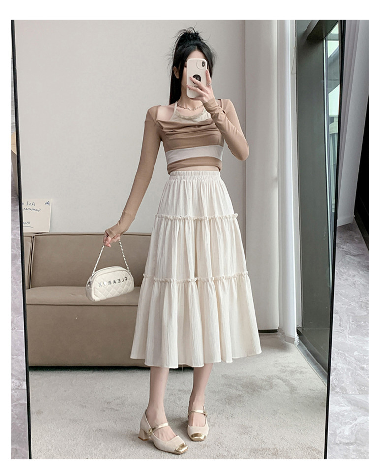 商品名 スカート レディース ボトムス ティアードスカート 裏地あり ウエストゴム ミモレ丈 可愛い カジュアル 夏