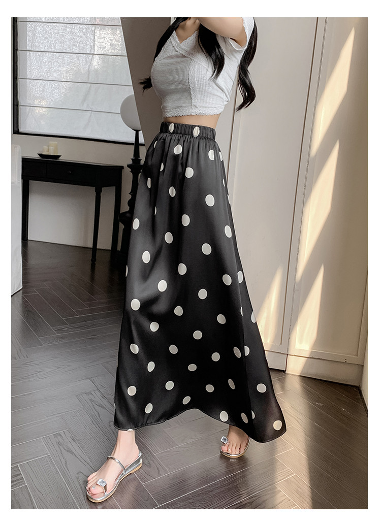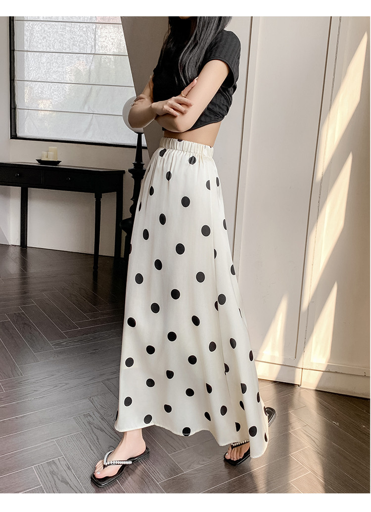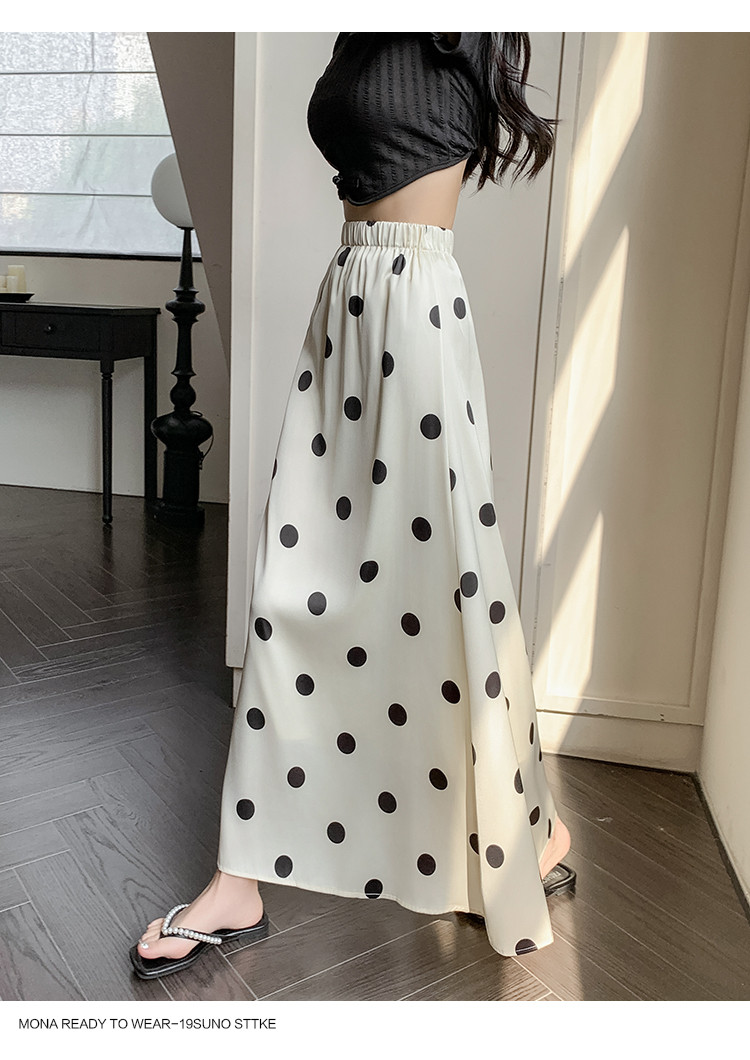 商品名 スカート レディース ボトムス 水玉 ウエストゴム アンクル ロングスカート Aライン フレア カジュアル