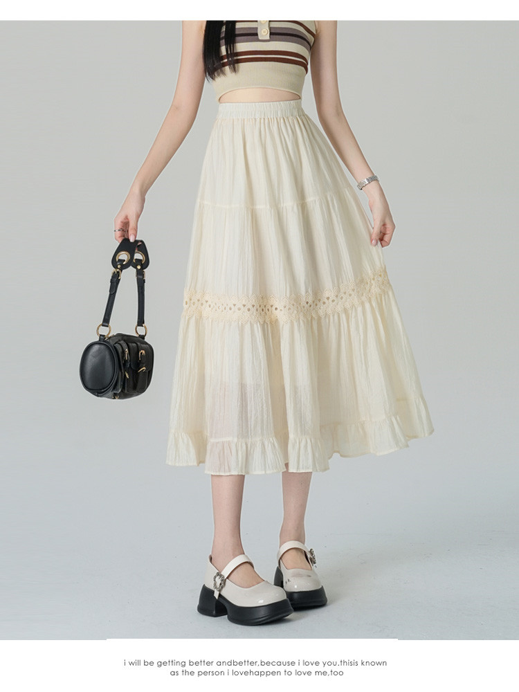 商品名 スカート レディース ボトムス ティアードスカート 裏地あり ウエストゴム ミモレ丈 可愛い カジュアル 夏