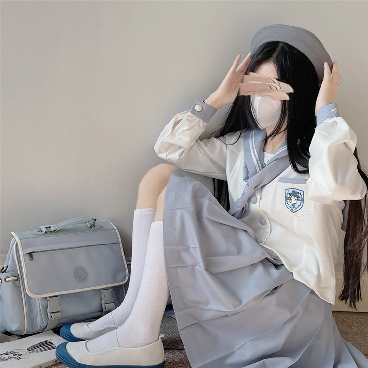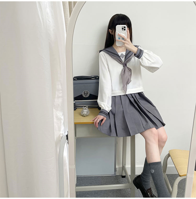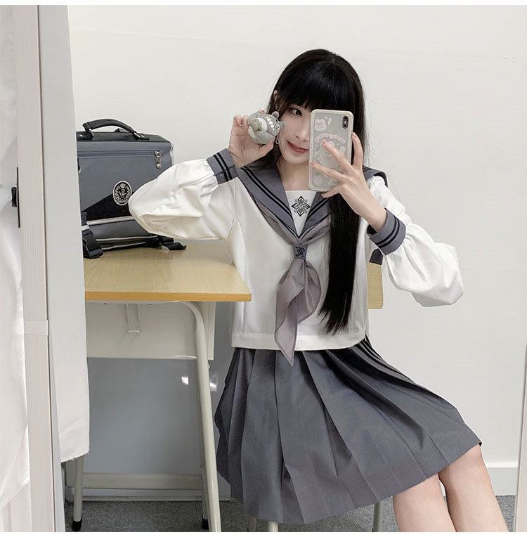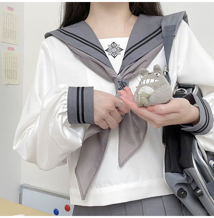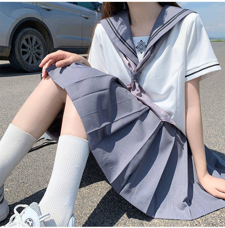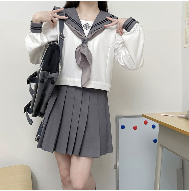 商品名 セーラー服 レディース 配色 トップス 上下セット 刺しゅう 刺繍 スクールウェア 制服 ショート丈 スカーフ