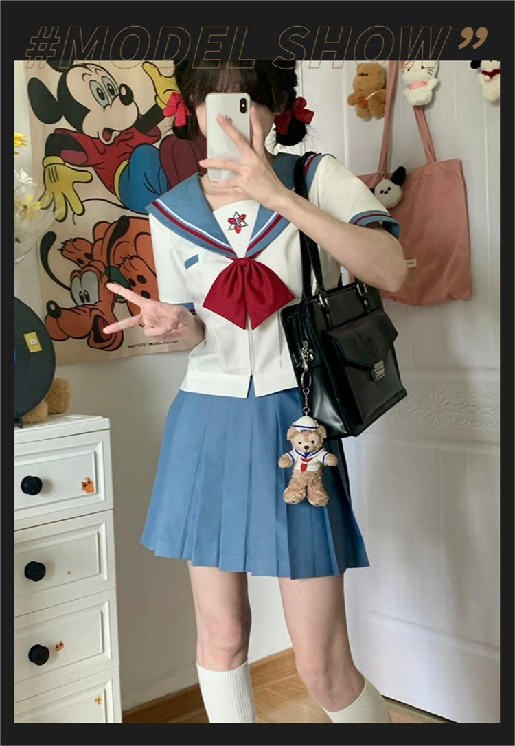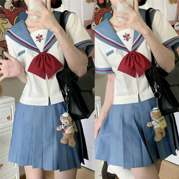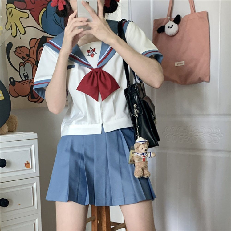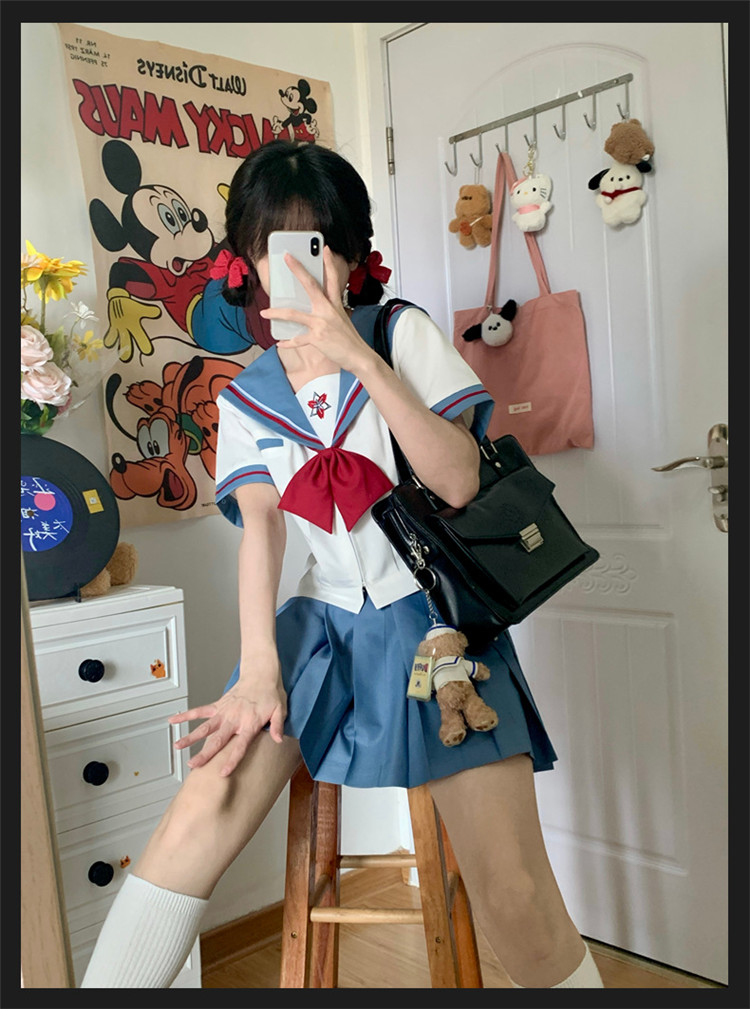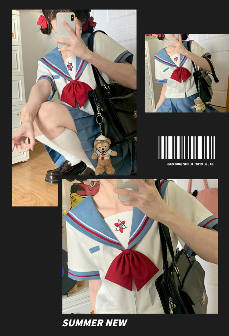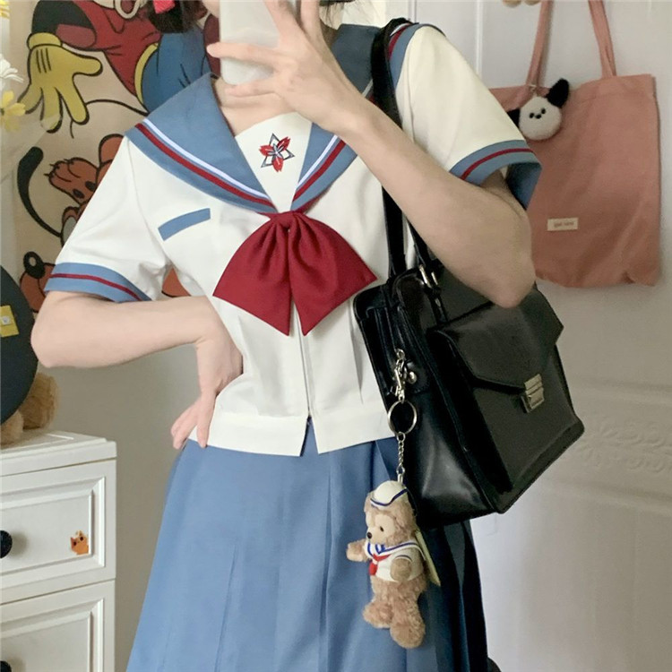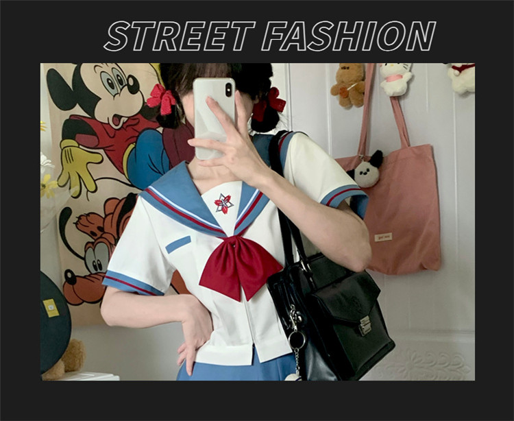 商品名 セーラー服 レディース 配色 トップス 上下セット 刺しゅう 刺繍 スクールウェア 制服 ショート丈 スカーフ